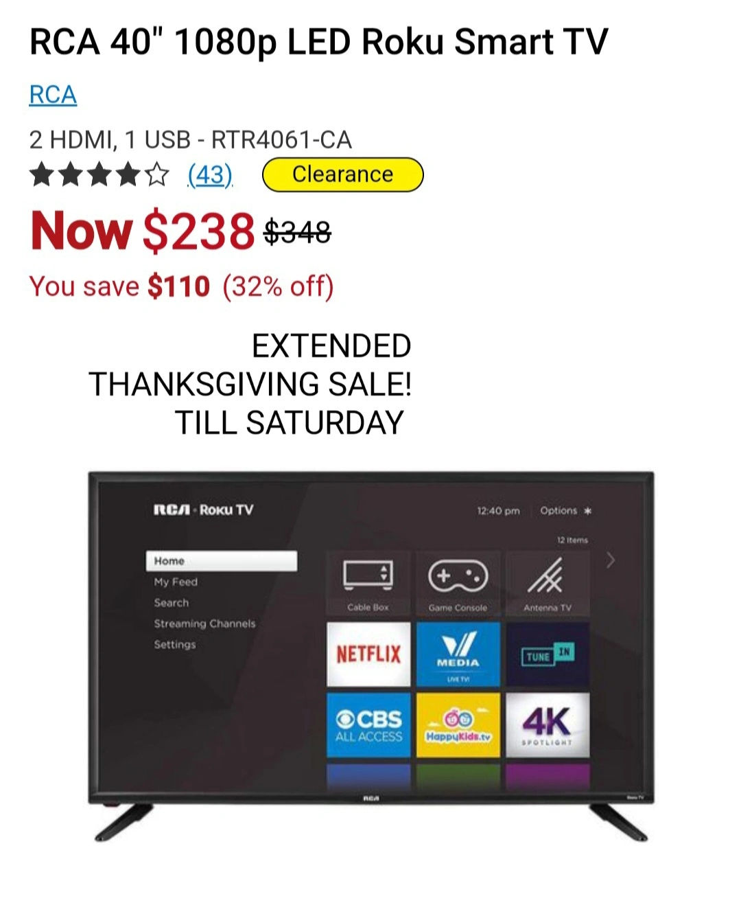 EXTENDED SALE! 40" ROKU SMART LED TV's $174.99 NO TAX