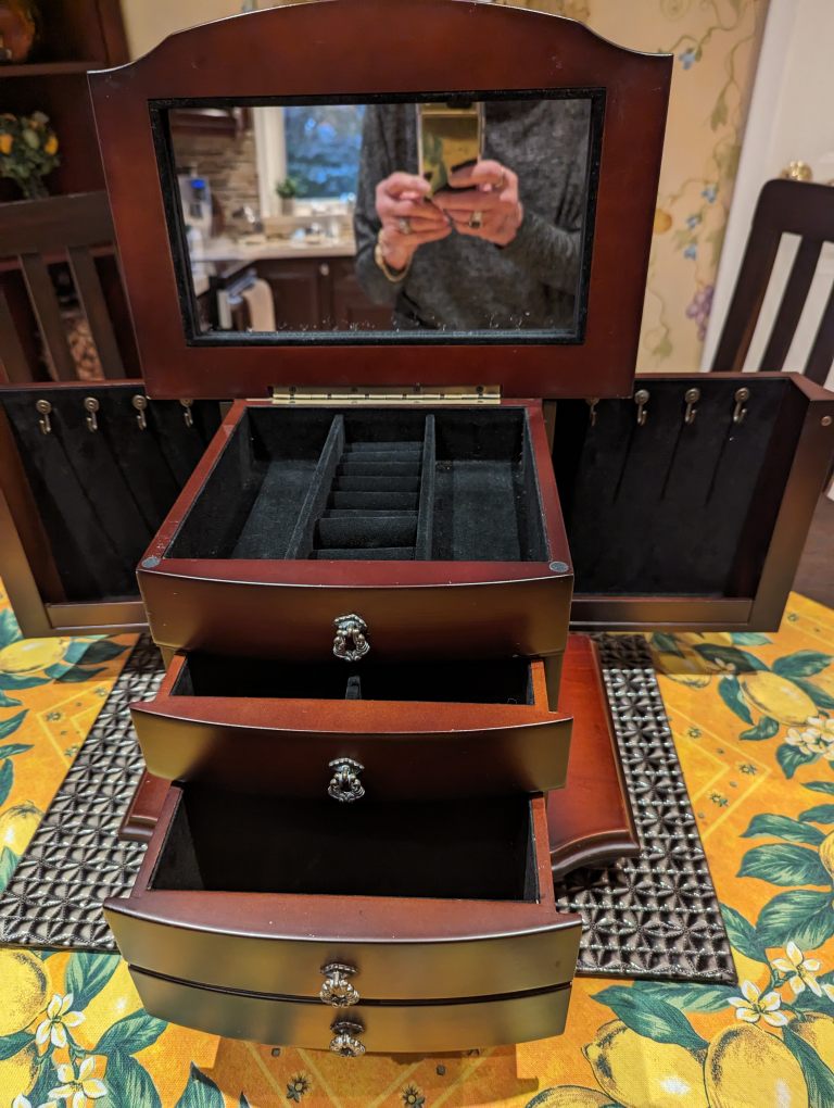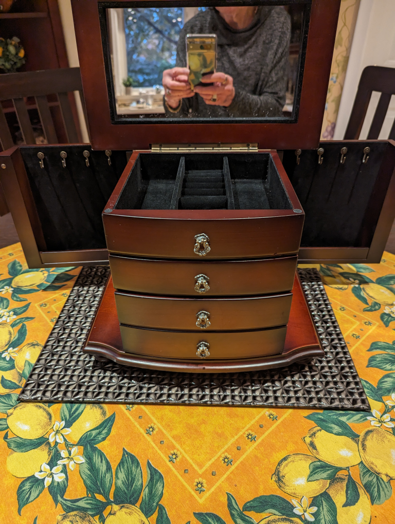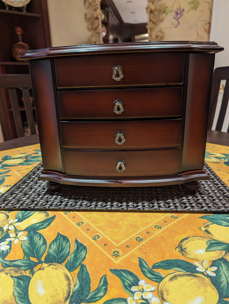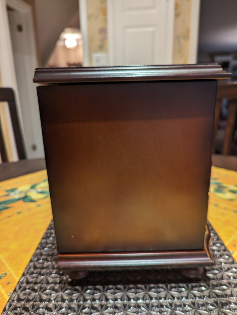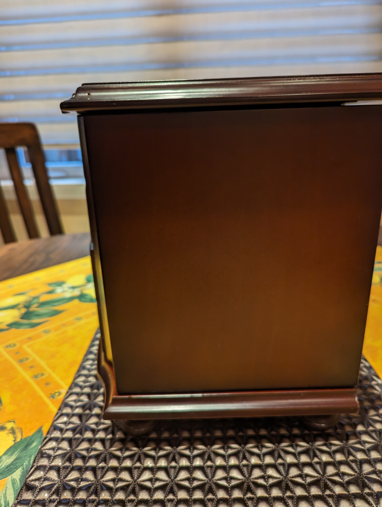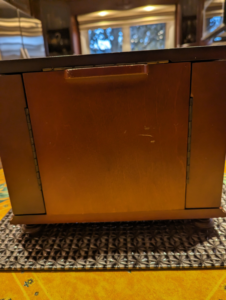 180This is a very nice item, in a rich mahogany colour, and in very good condition. Height: 10.5" Width: 12.75" Depth: 8.5"