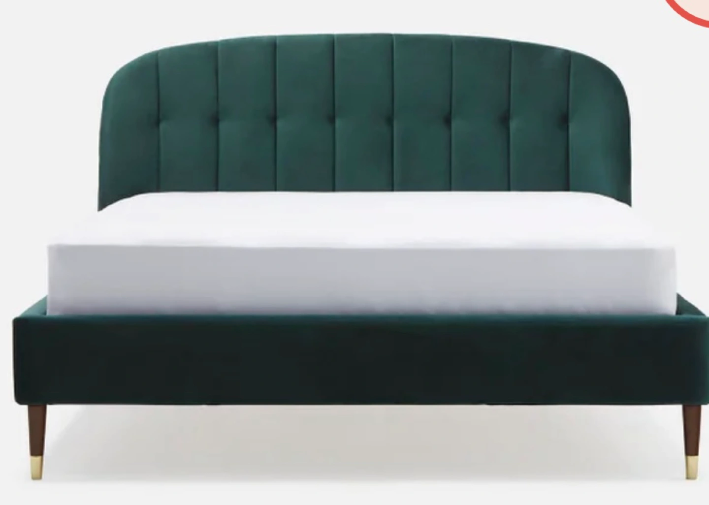 Footboard and side panels: MDF and plywood, upholstered in velvet emerald green.