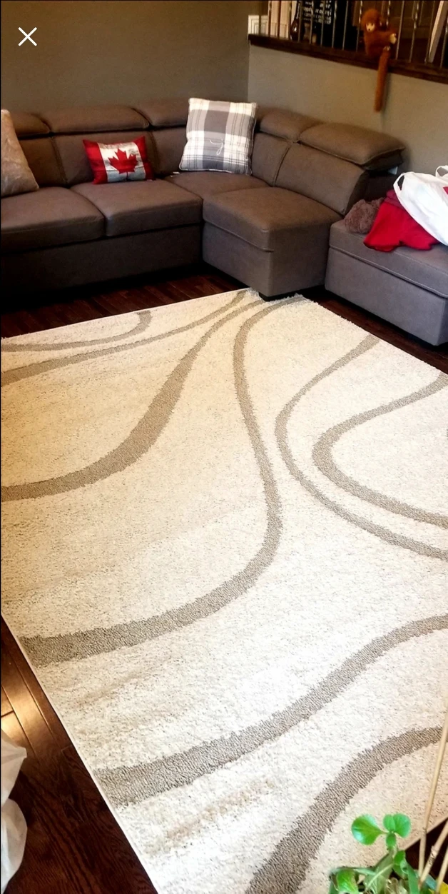 39Bought this rug when redecorating the living room but it ended up not being the right size and colour, and unfortunately I was unable to return it. Ended up buying a new one that worked well so looking to sell this to someone else to brighten up their space. Rug is an off white/cream colour with dark brown swirls and 8x10 in size. Bought it for $550 tax included.