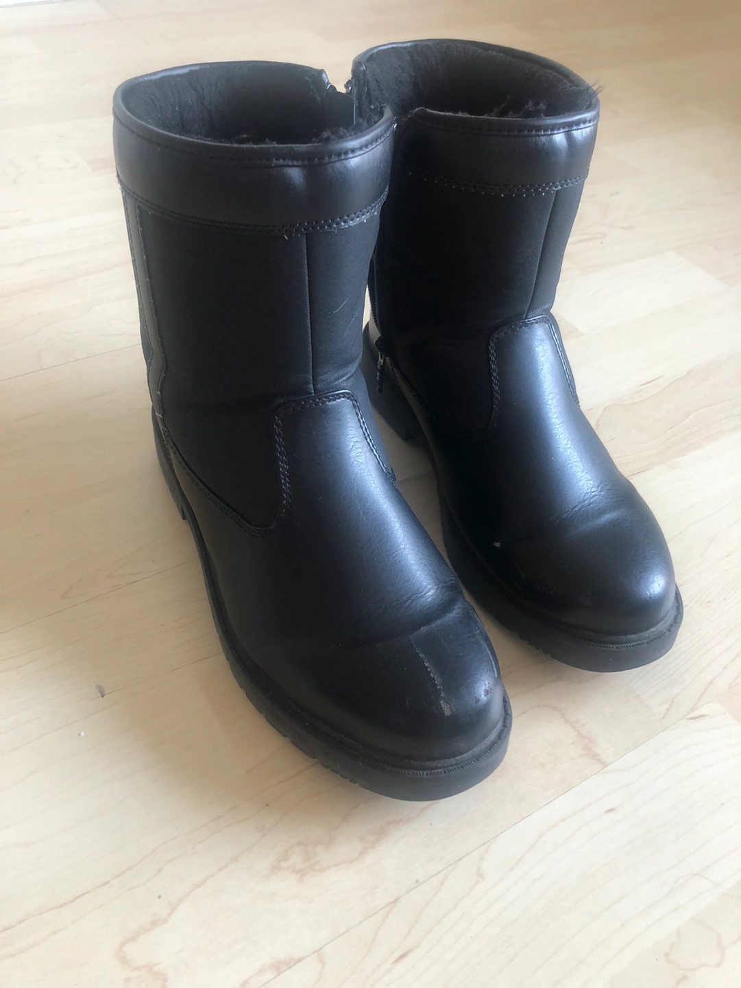 The boots have slip-resistant soles and a water-resistant exterior, perfect for snowy or rainy days. I bought them in December 2022 and used them every day during winter. There are minor scratches on them, but they are in good shape.