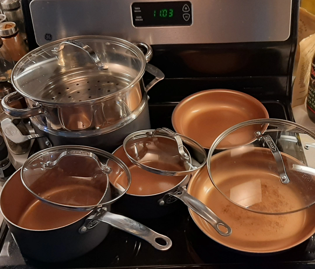 *Large frying pan has some wear, but the remaining set pieces are in Greta condition