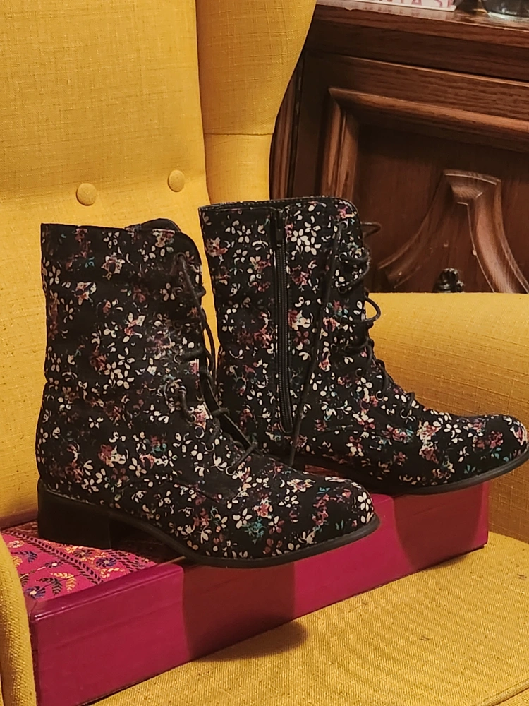 Charlotte Russe women's floral combat boots in excellent condition. nearly brand new.