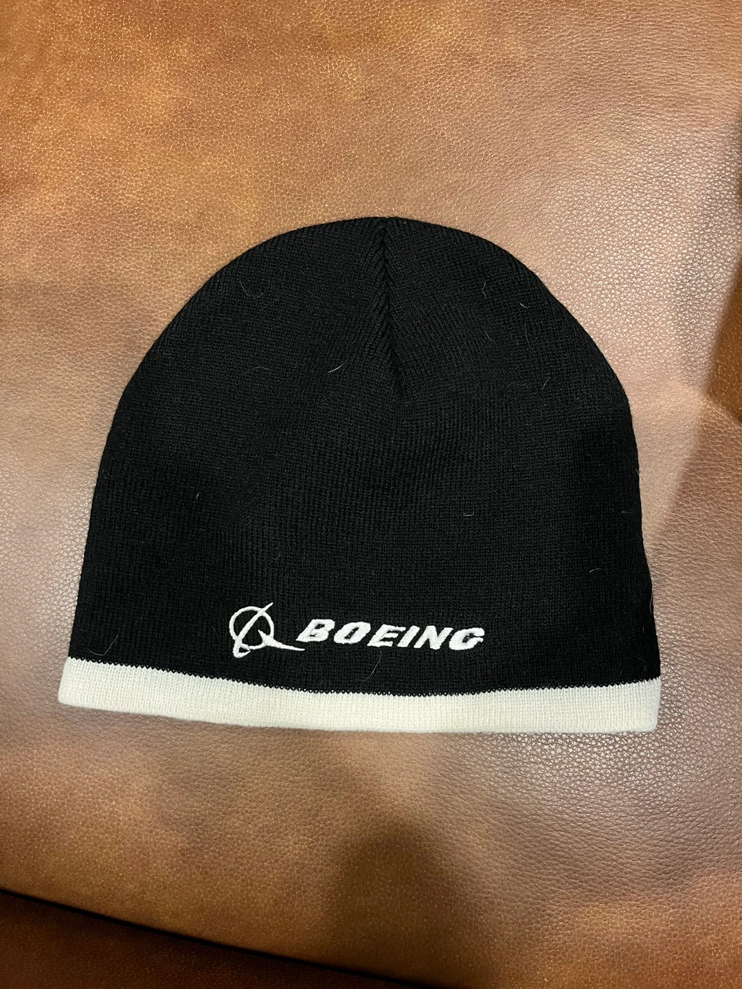 Brand new no tags. Winter beanie hat. Black with white trim and Boeing logo. 100% acrylic.