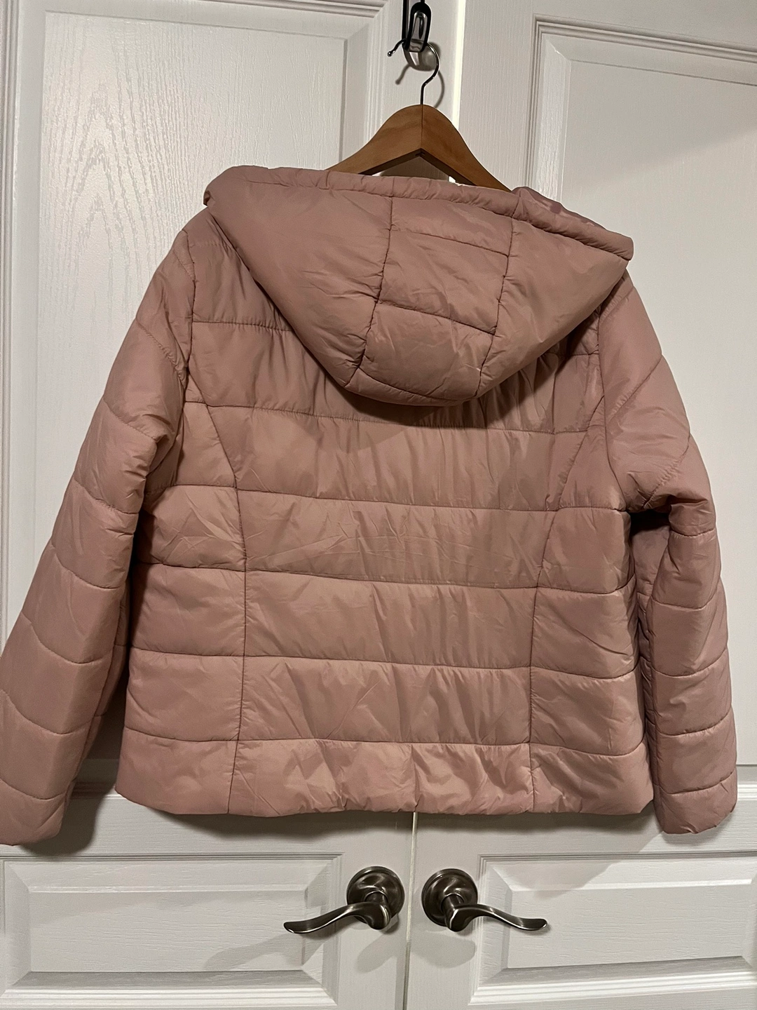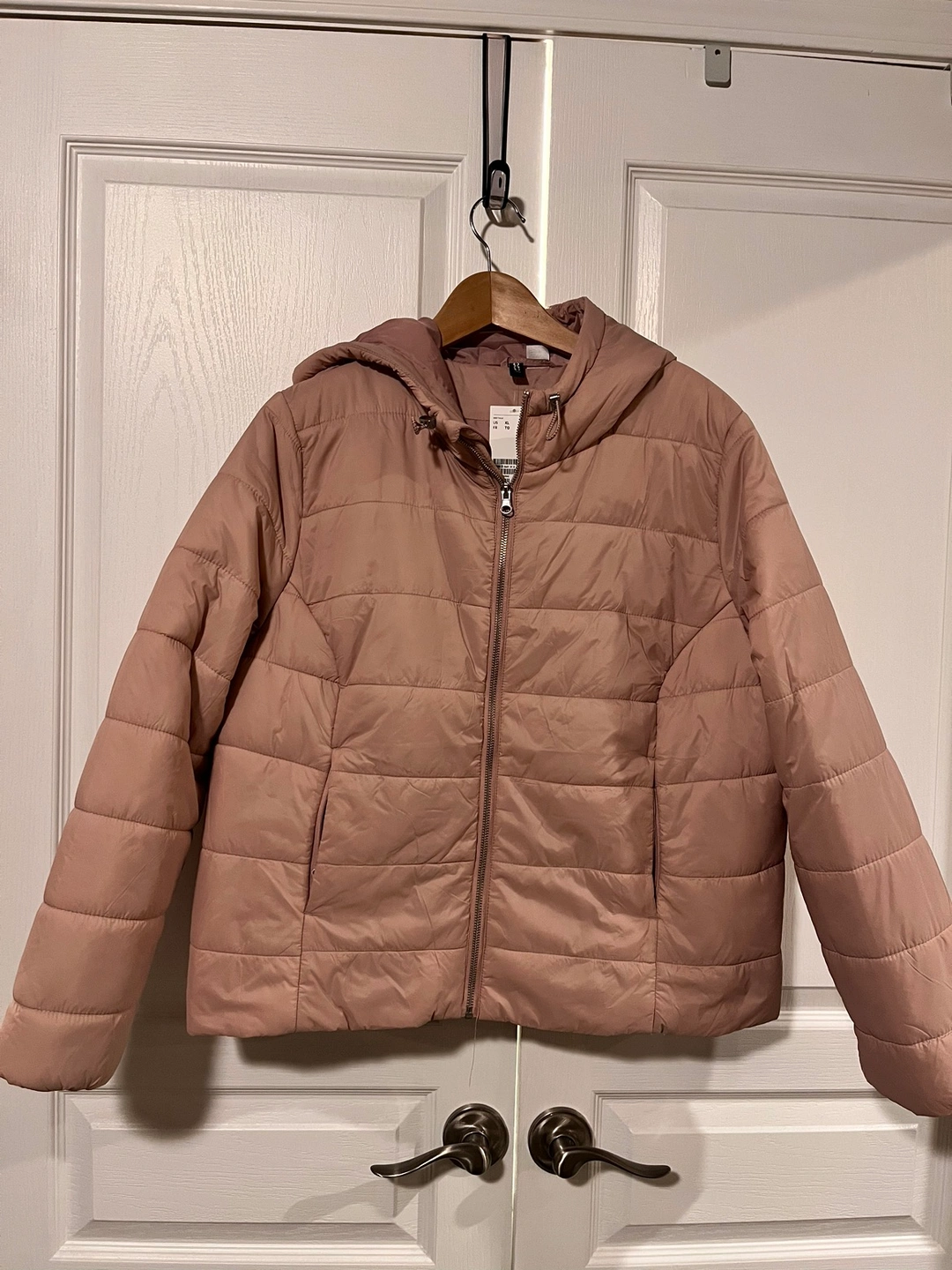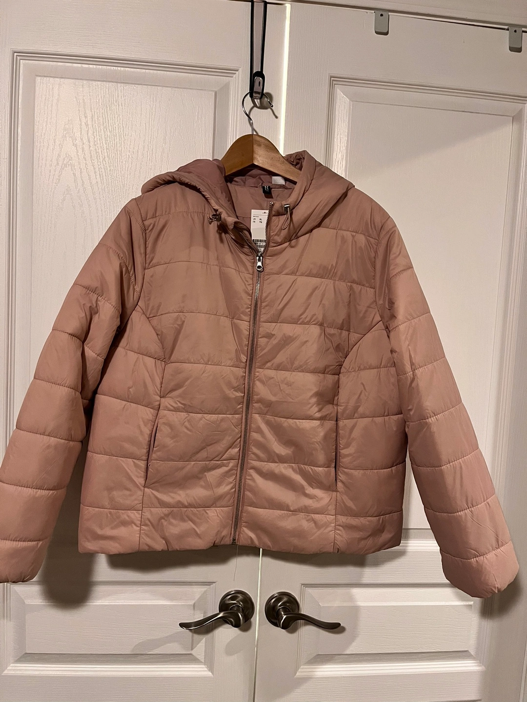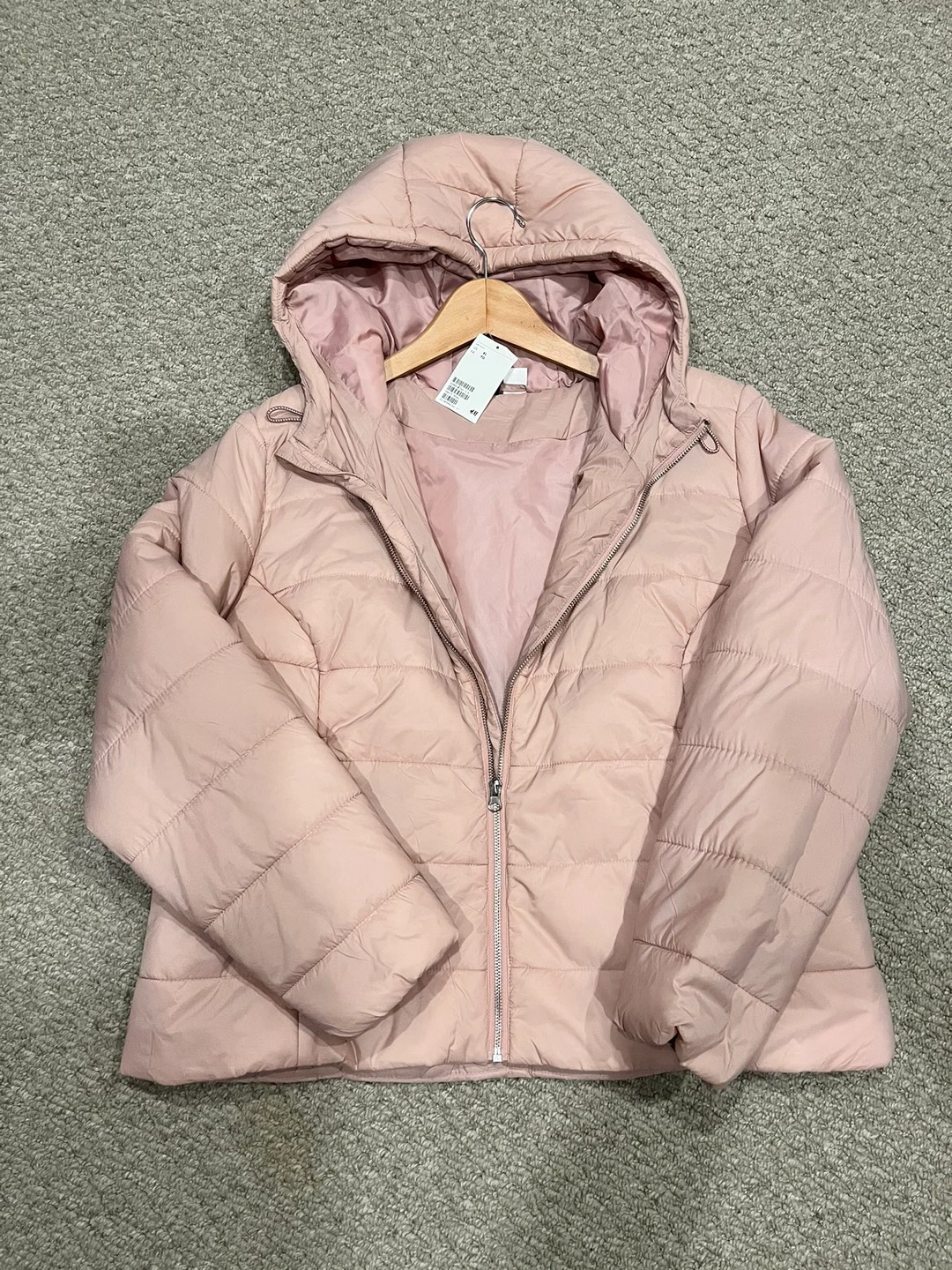 Brand new with tags. Ladies H&M dusty rose colored hooded jacket. 100% polyester. Short length. Zipper closure with zippered side pockets.