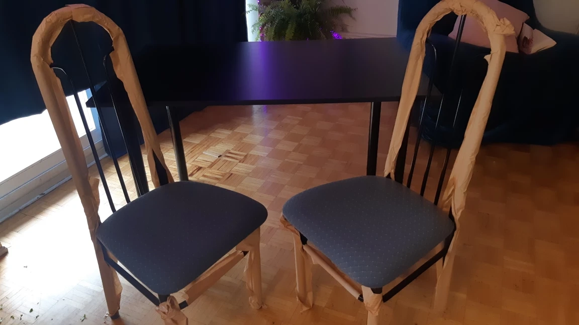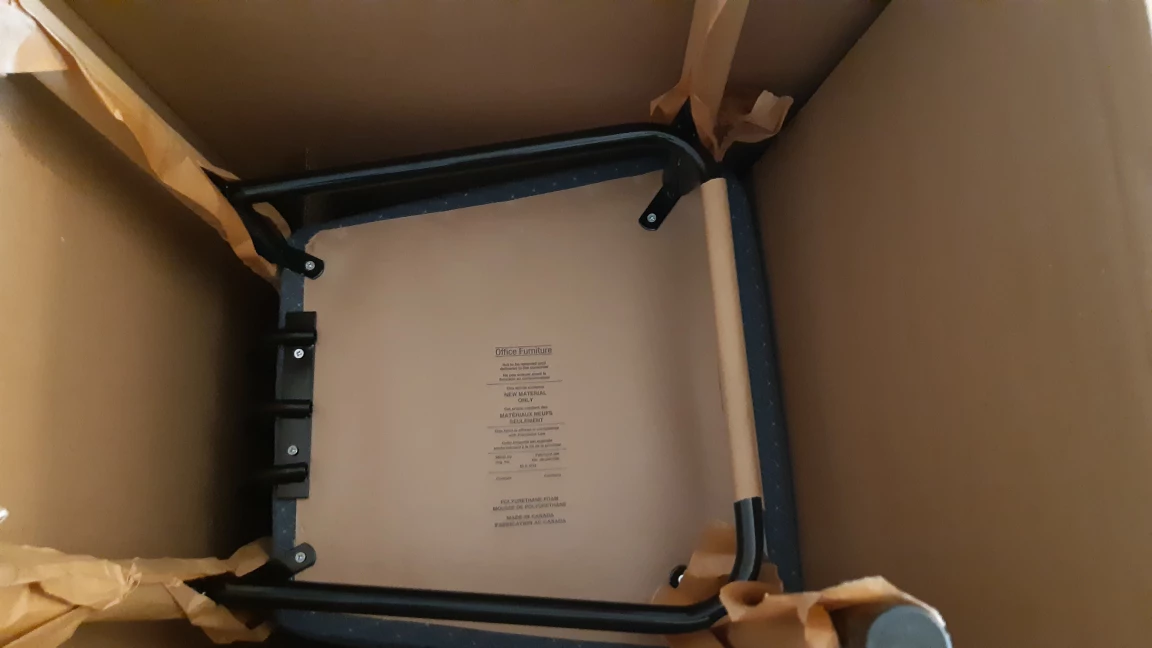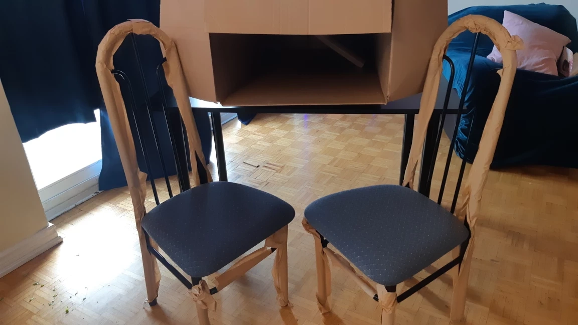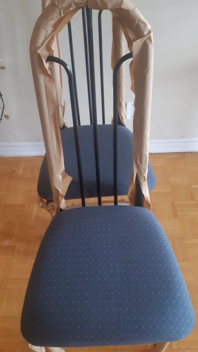Chairs are wrapped in packing paper and in box. I just took them out of the box to photograph.