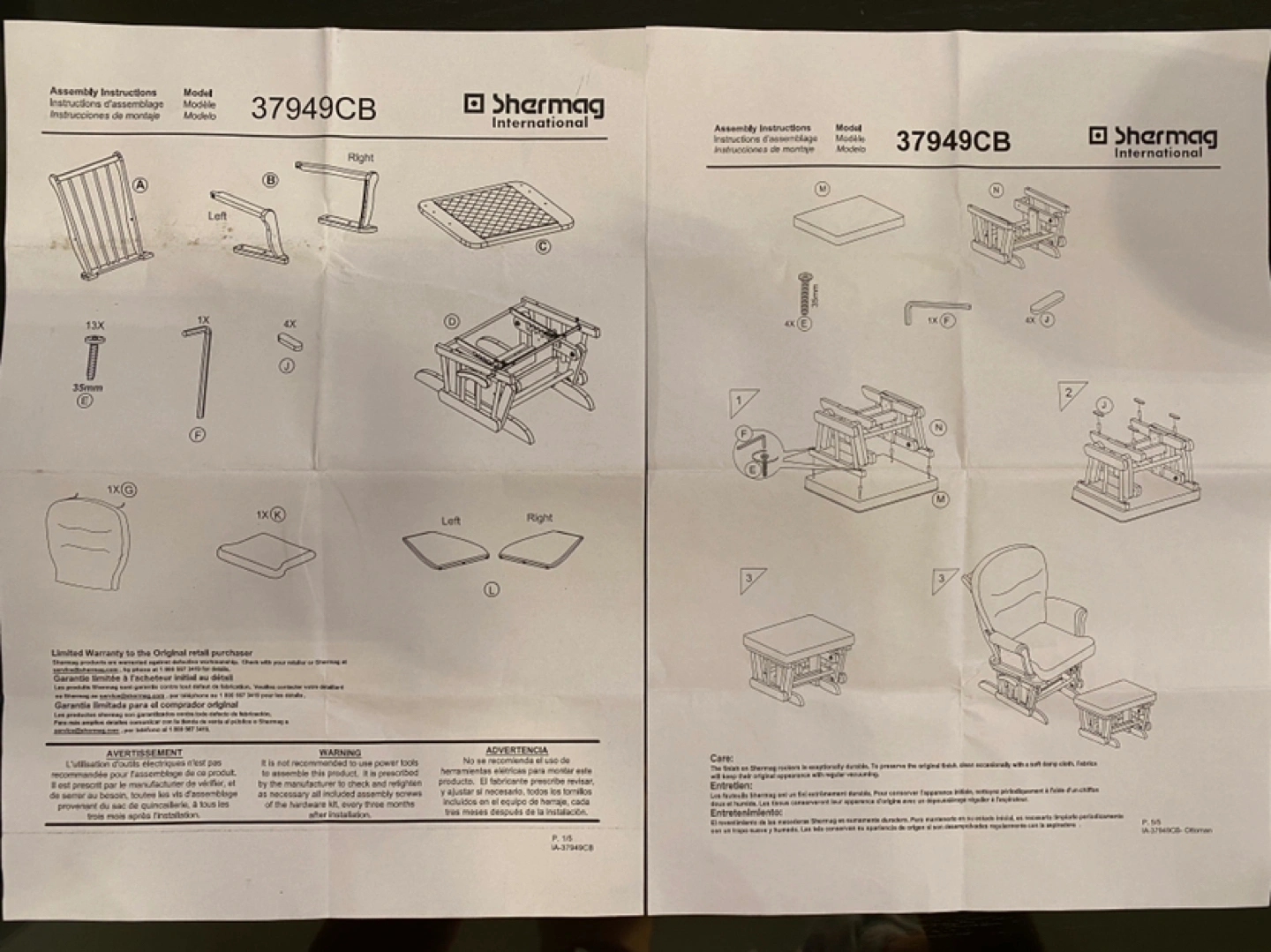 Shermag Glider (Rocking Chair) and Ottoman SET