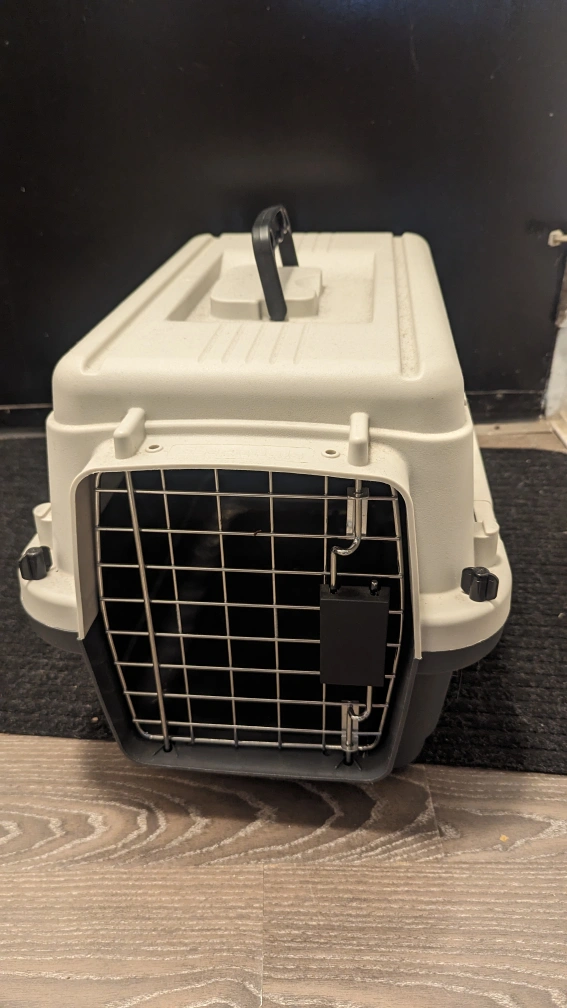 Free small pet carrier, good for a small dog, cat or we used it for our rabbit.