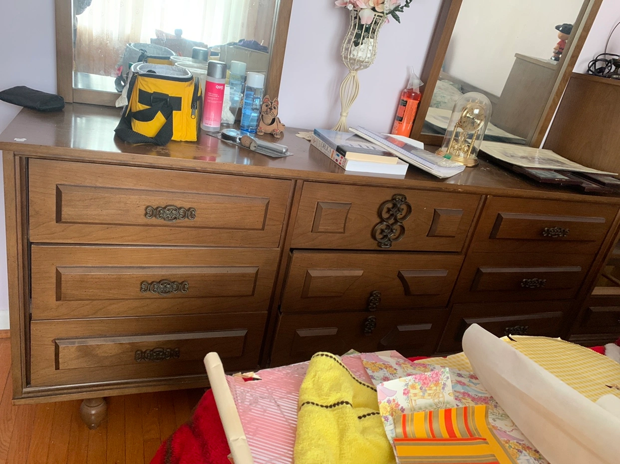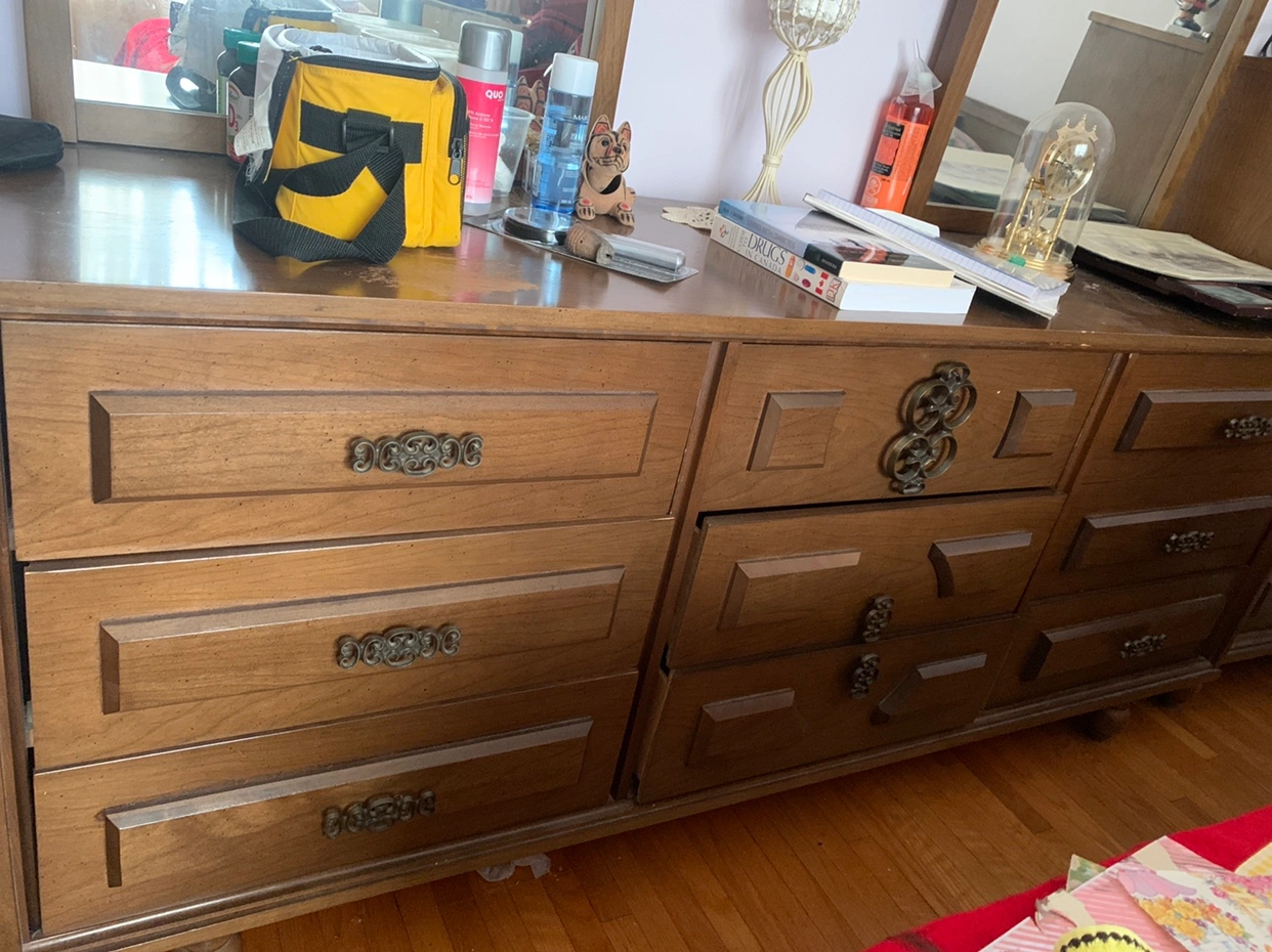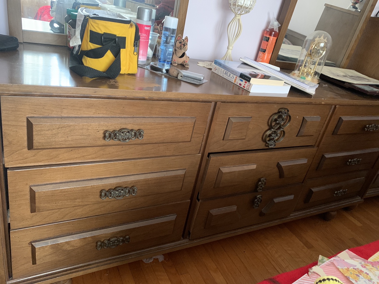 A wooden dresser that comes along with two mirrors 38 inches and also two night tables