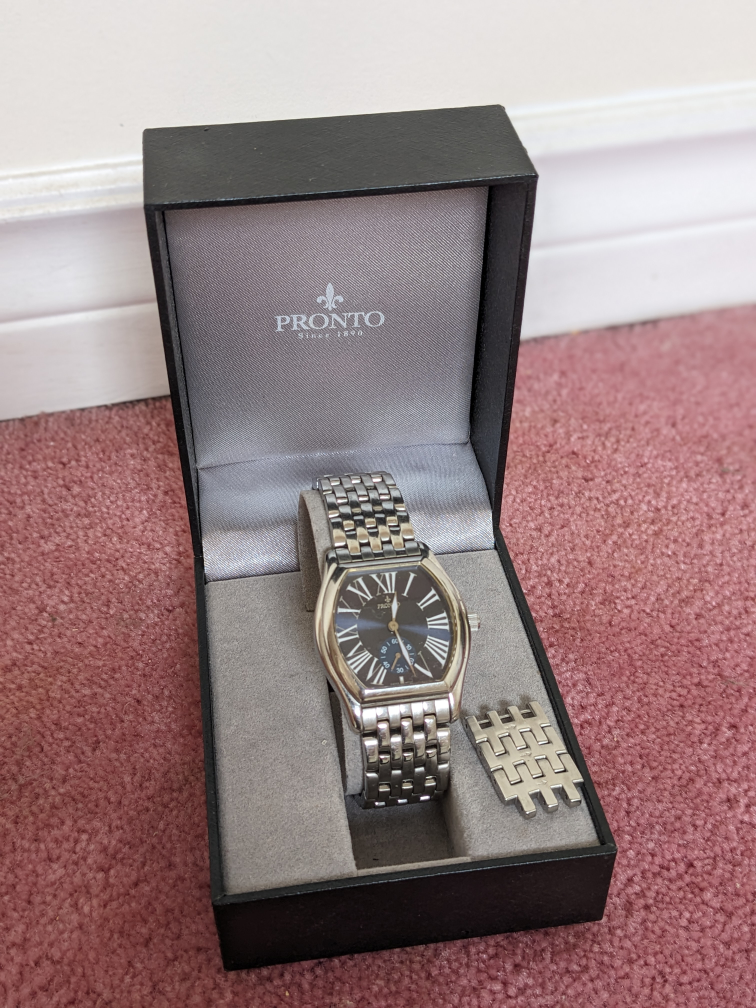 1 / 41 / 4Buy & SellPronto swiss watchPronto swiss watch$100Brand: Pronto swiss movement need a new battery BrandProntoWHERE TO MEETKillarneyView MapSELLERGodfreyKillarney15213 reviews1 chats·1 favorites·225 viewsSEND CHAT TO SELLERHi Godfrey! I’m interested in your listing.Hi Godfrey! I’m interested in your listing.Get the Karrot app to chatSign In to chat