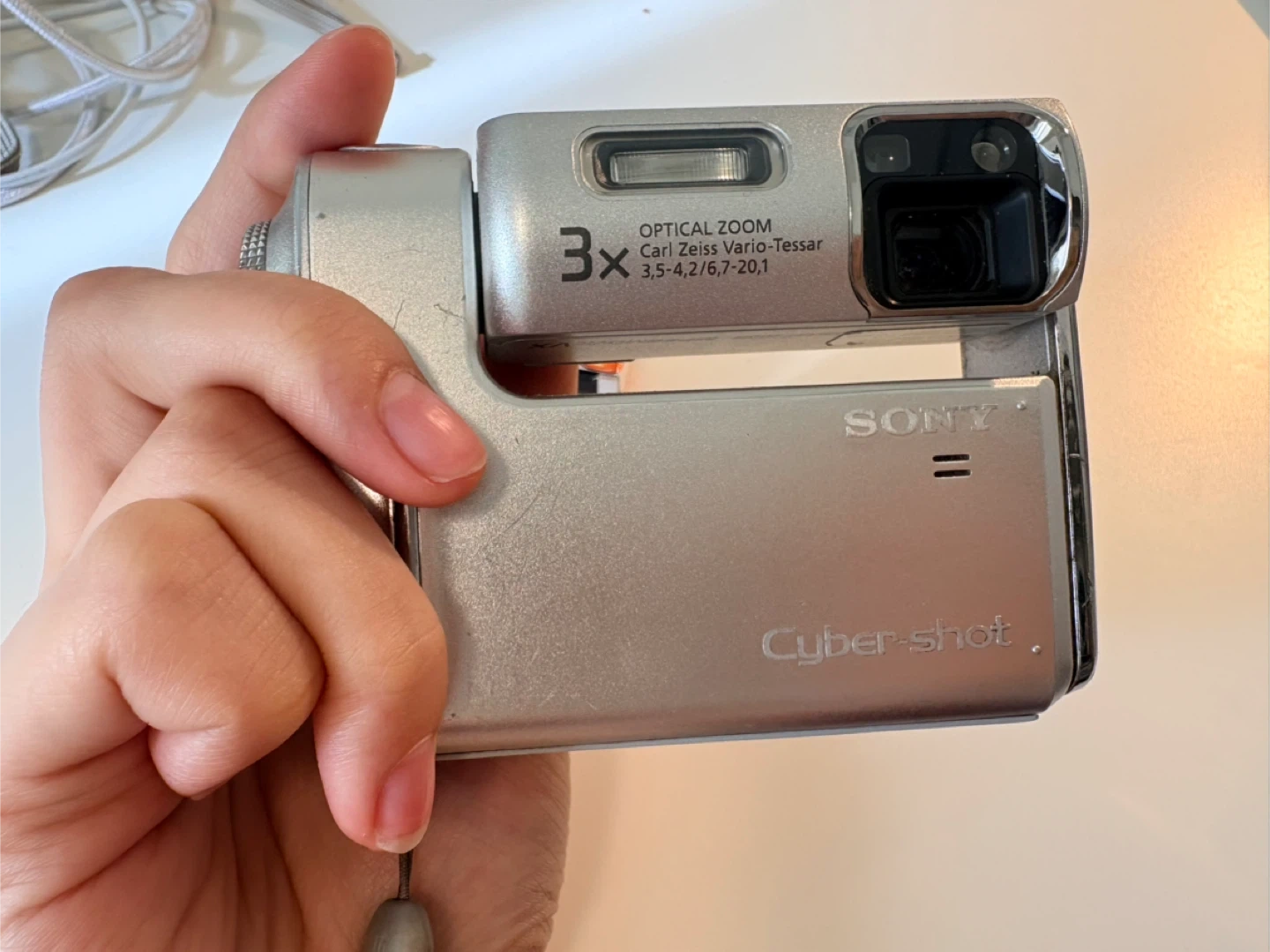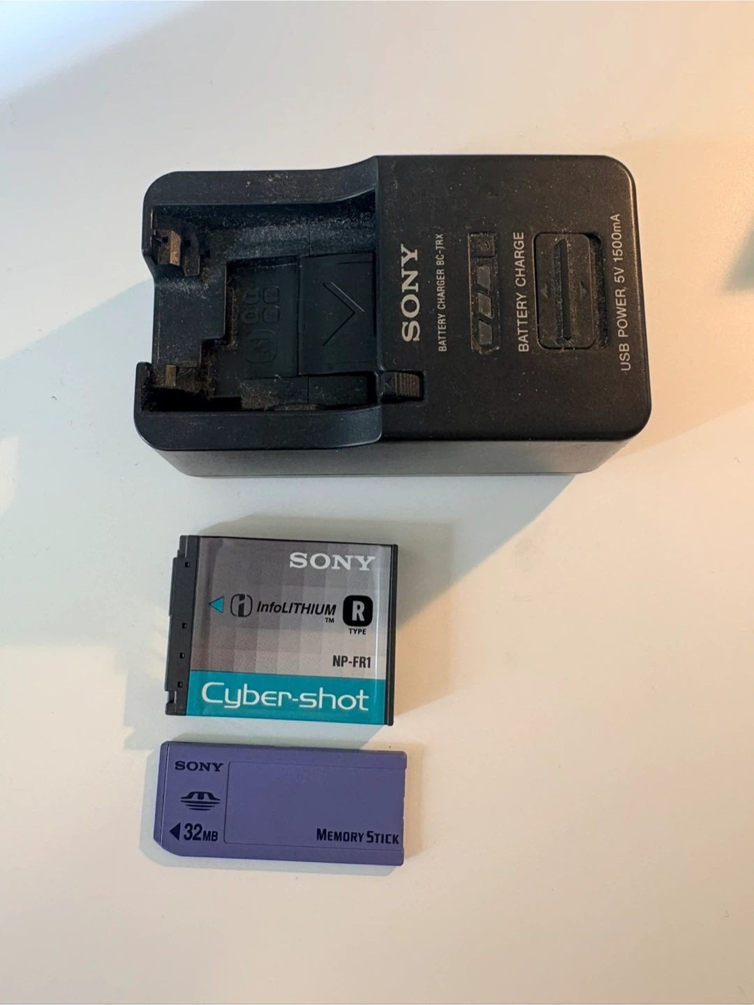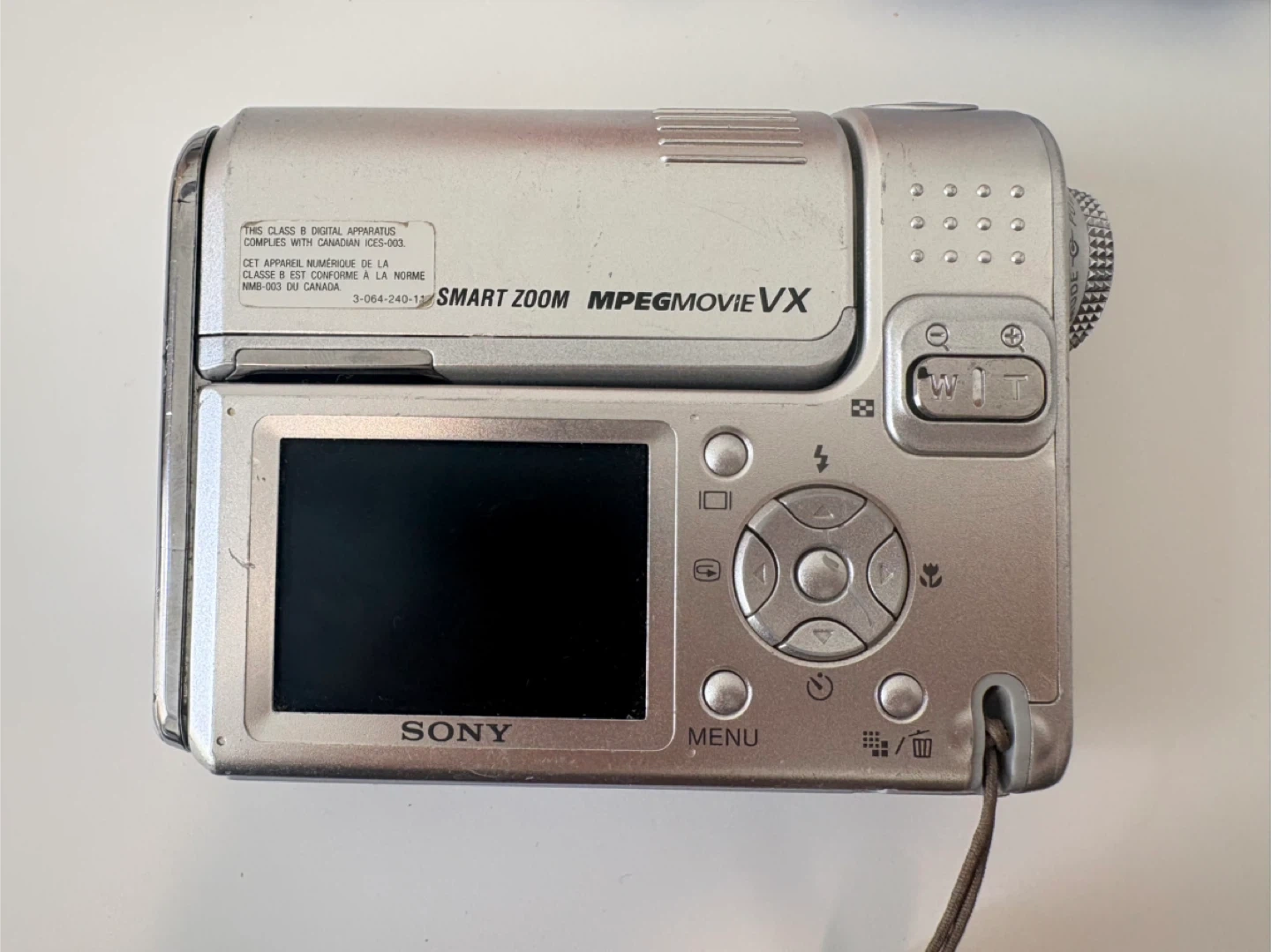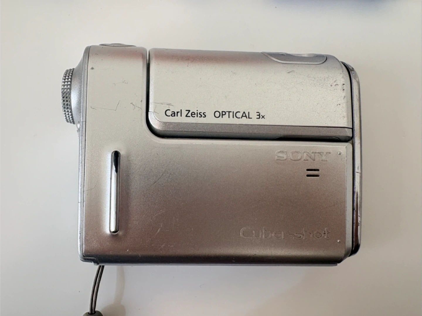 Selling a silver Sony Cyber-shot digital camera. It features Carl Zeiss optical 3x zoom and MPEG Movie VX.