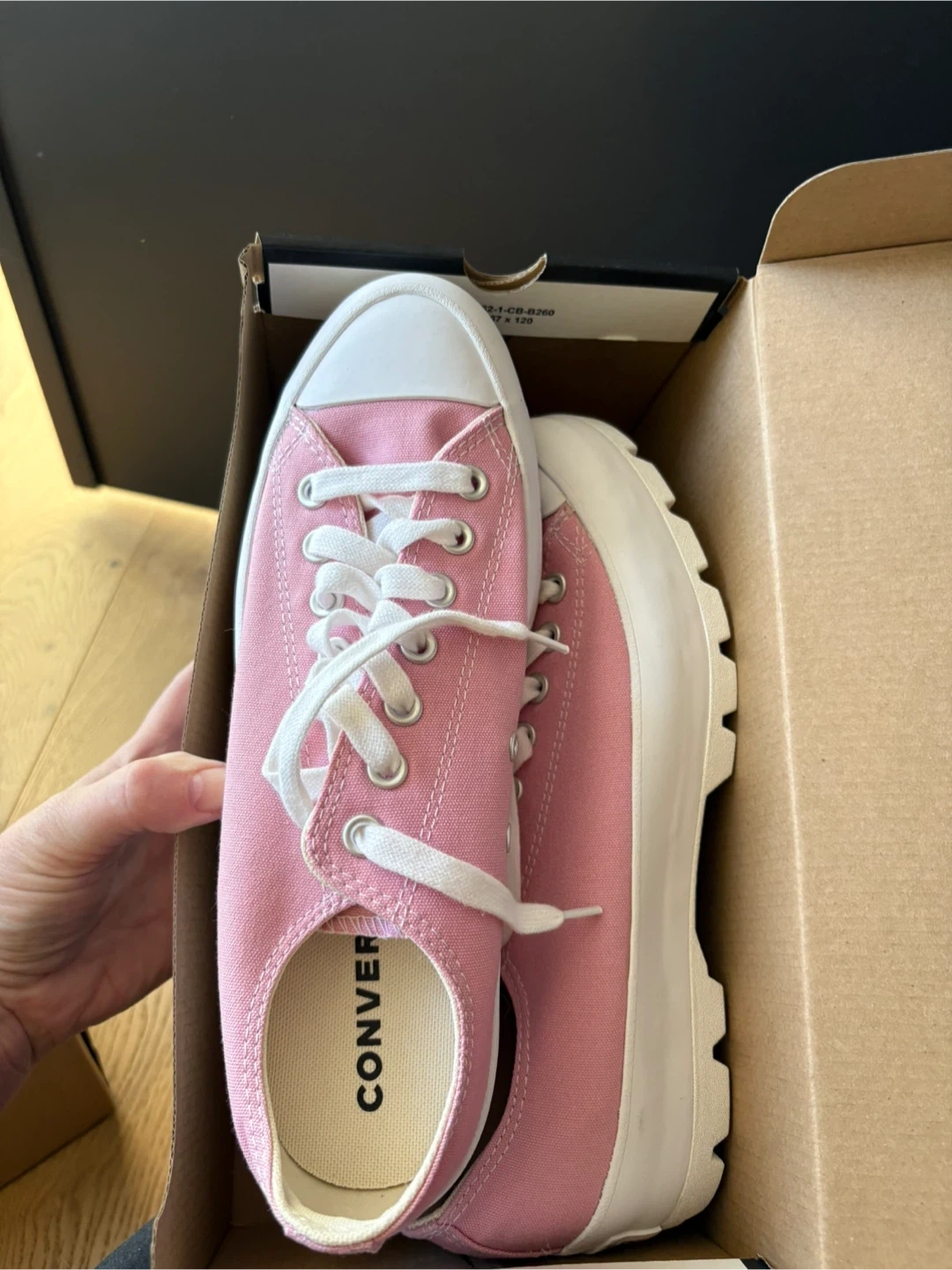 Brand new in box Converse Chuck Taylor Lugged Ox shoes. Women's size 10.5 (US) / 42 (EU). These feature a bright pink canvas upper and a platform sole.