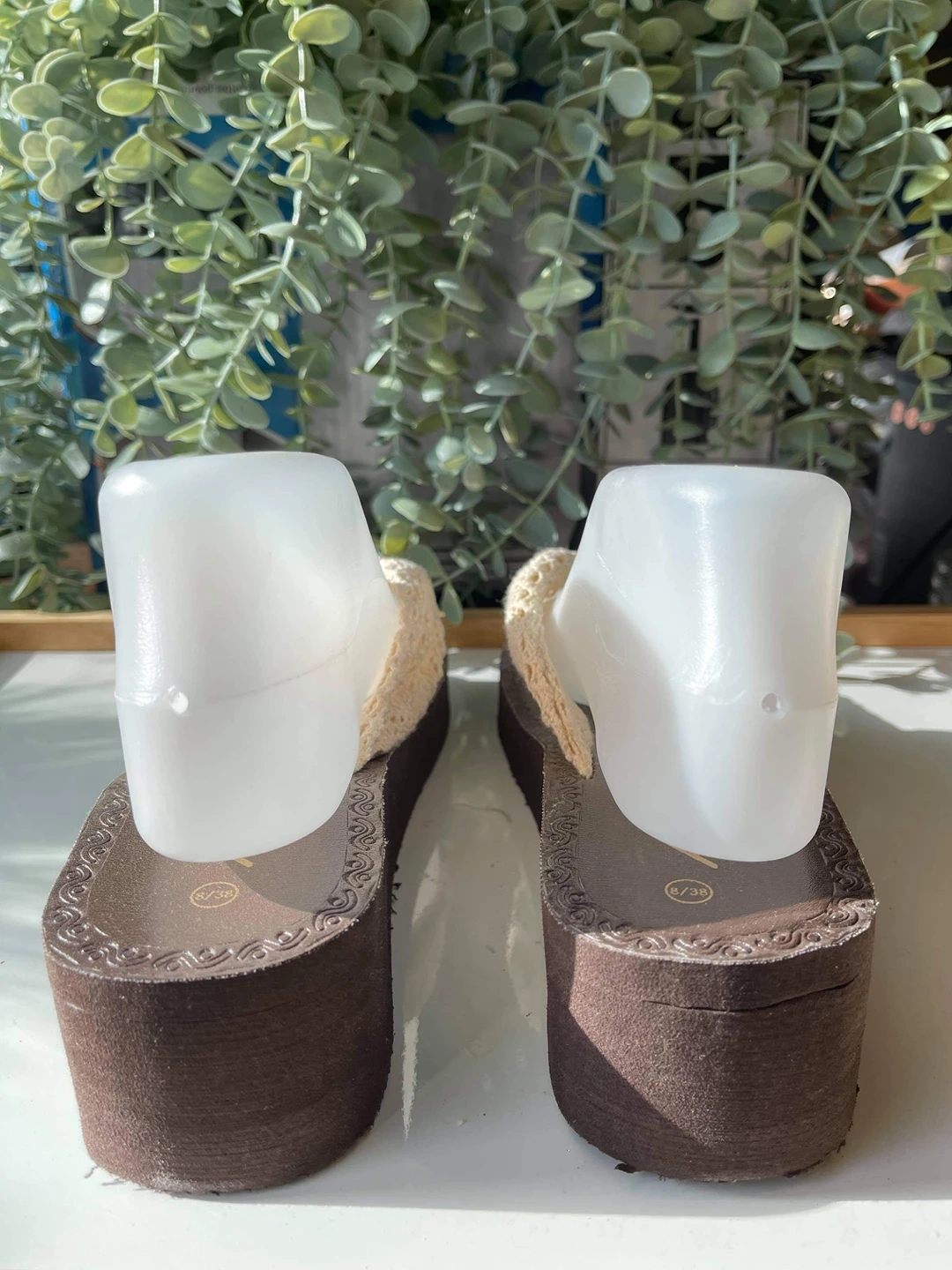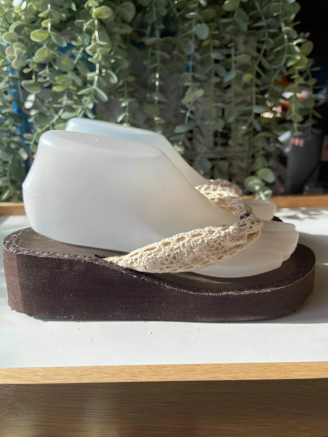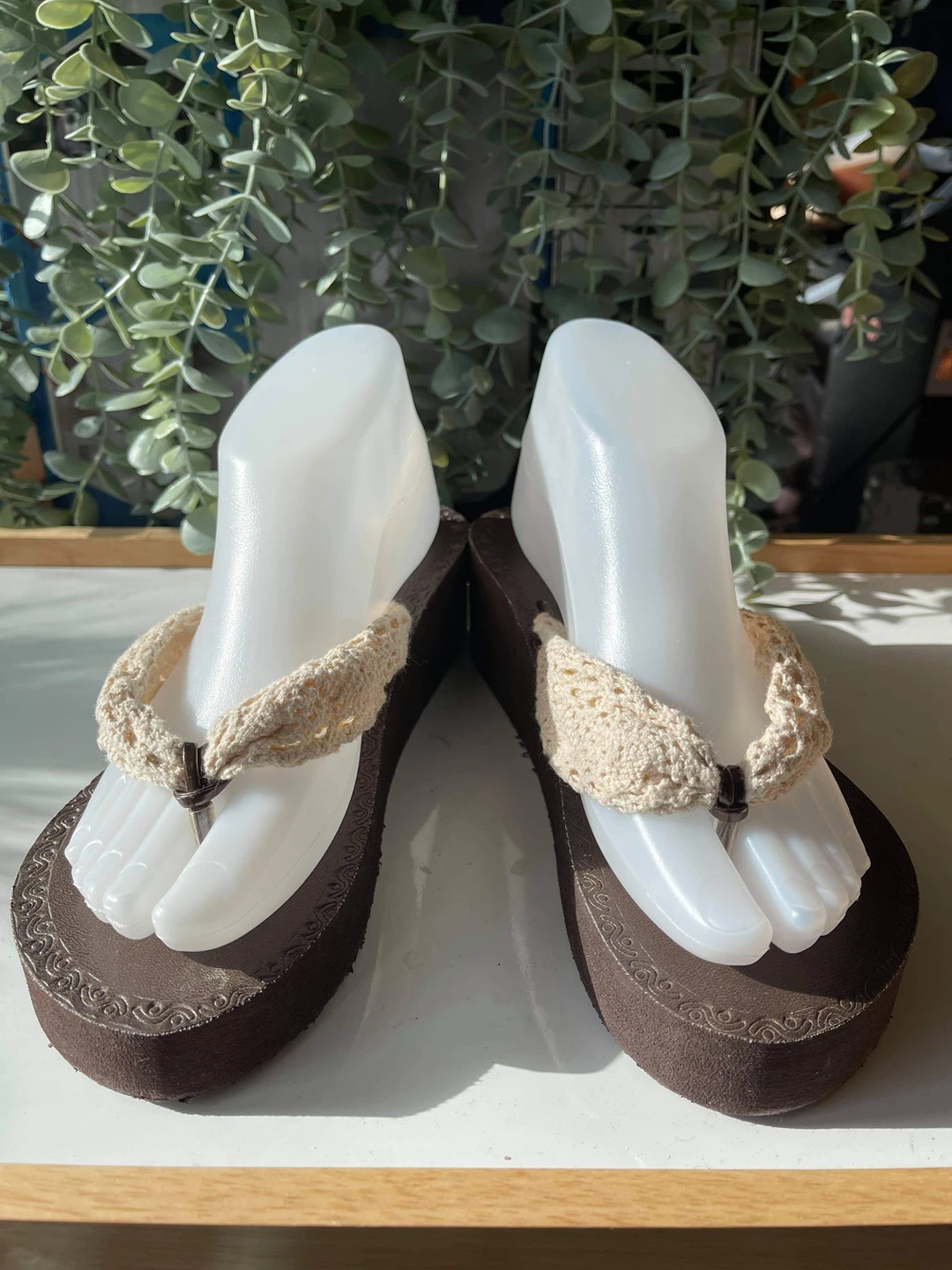 CRUISE WORTHY! Women's size 7 crochet thong straps, used once, recommended for wider feet; bought at $19; now $14 only