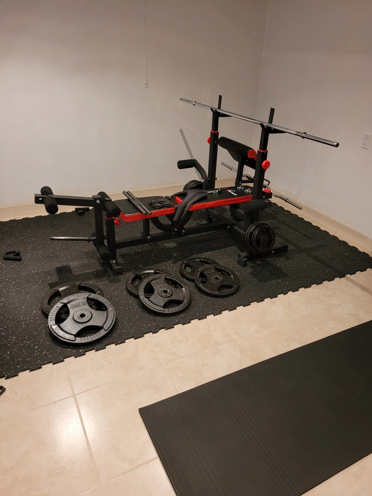 Home Gym - Please read the entire posting before sending a message. Thank you. Bench press plus plates and bar along with rubber mats and curl bar for sale. ALL ITEMS purchased online thru Fitness Avenue. Looking to sell altogether and quickly. Serious inquiries and CASH ONLY! Purchased all in 2021 and used only handful of times. Please message me for more details and pricing. I've done my homework on pricing so please be fair when making an offer. All these items brand new can run close to $1100 or more plus tax. I do have original online order receipts. Rubber Mats 40" x 40" x 10mm - 12 ... I paid $28.99 each originally. Bench press - originally paid $319.99, now advertised for $289.99 Fitness Avenue. Includes leg Curl, preacher Curl attachments, as well as abs attachment. Plates 1" Size - 2 x 45, 35 and 25 lbs ... 4 x 10, 5 lbs ... 8 x 2.5 lbs plates. These will run $1 per pound if you need to know the price. I know the company I purchased from is selling for $1.60 per pound. Standard Solid Chromed Bar - 6ft ... Fits 1" plates advertised above. Standard Threaded Chrome Curl Bar - 47" includes locking collars ... Fits 1" plates advertised above.