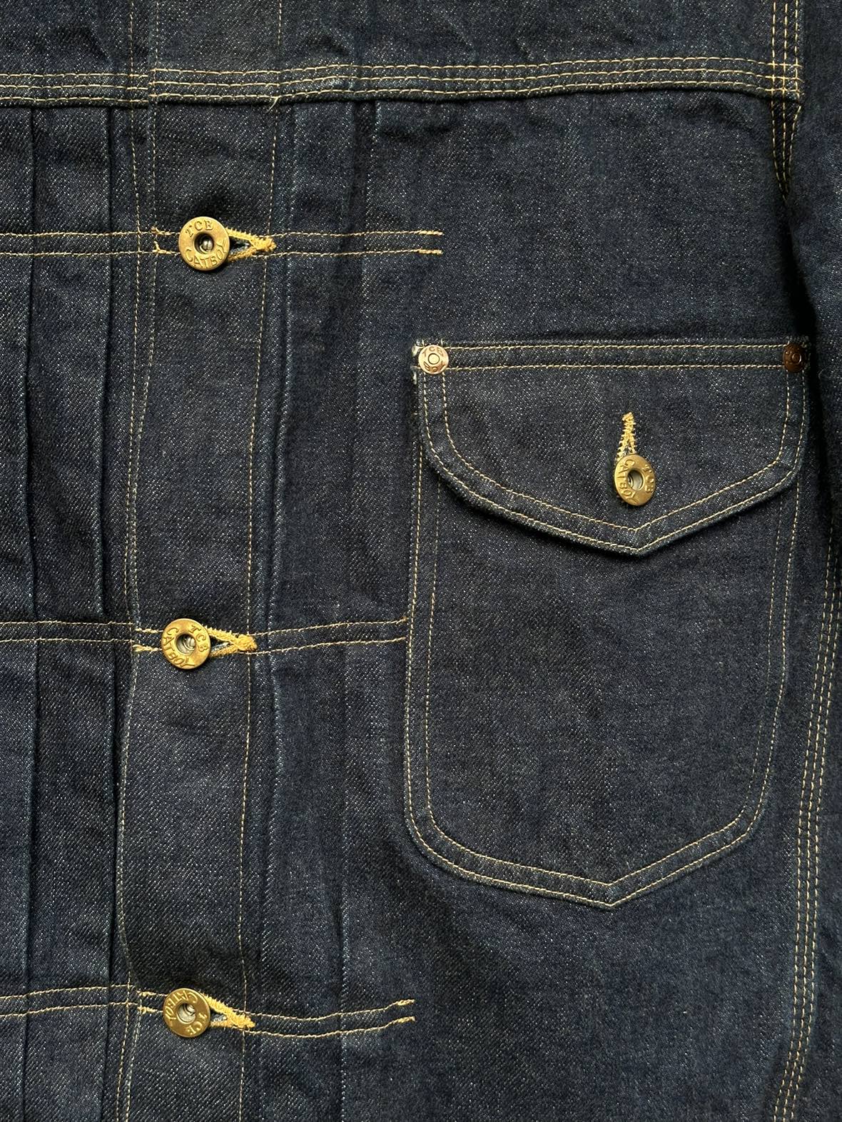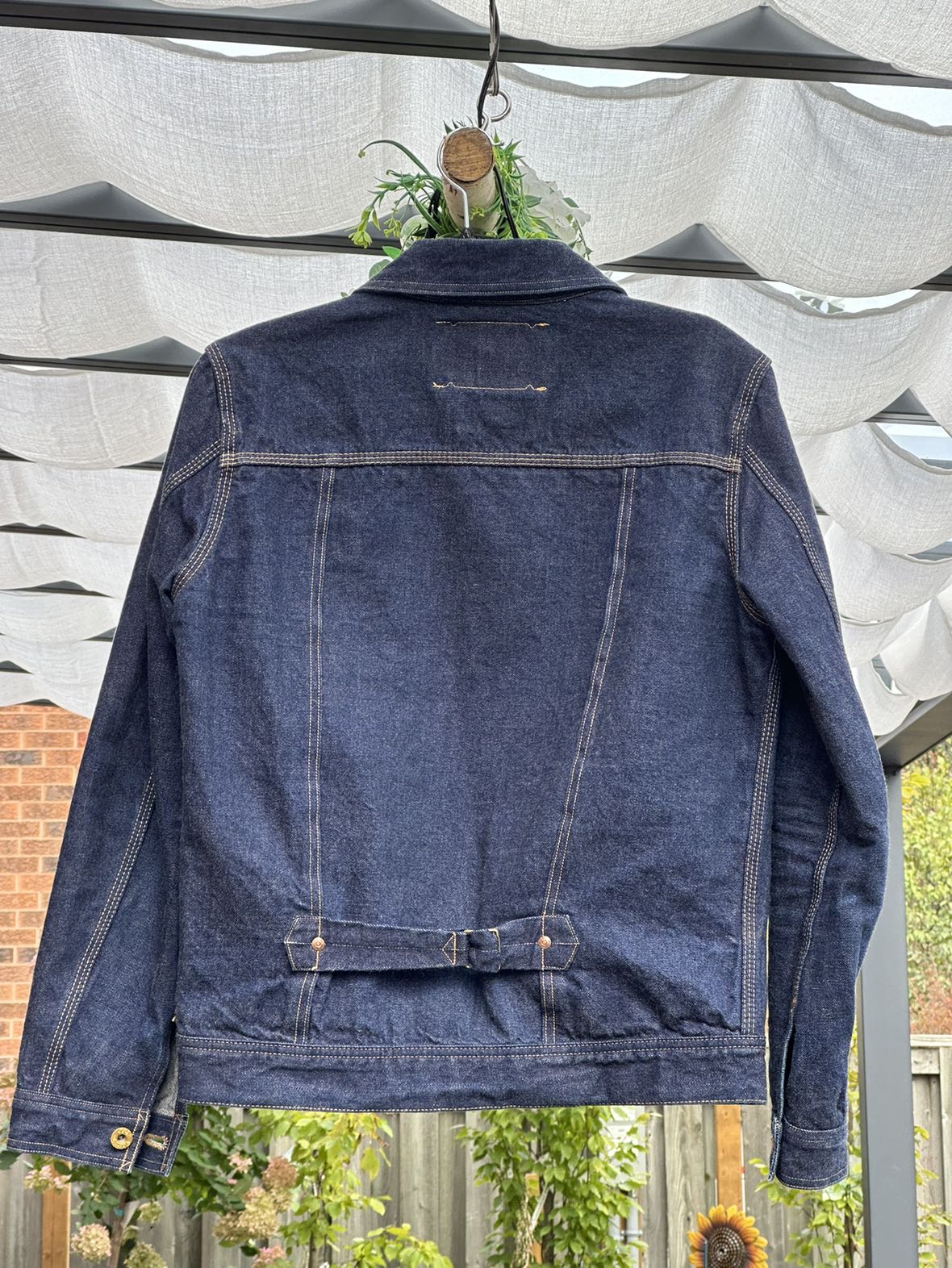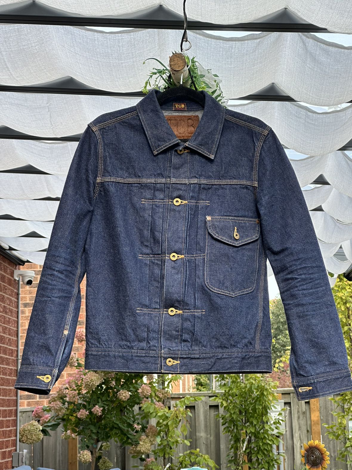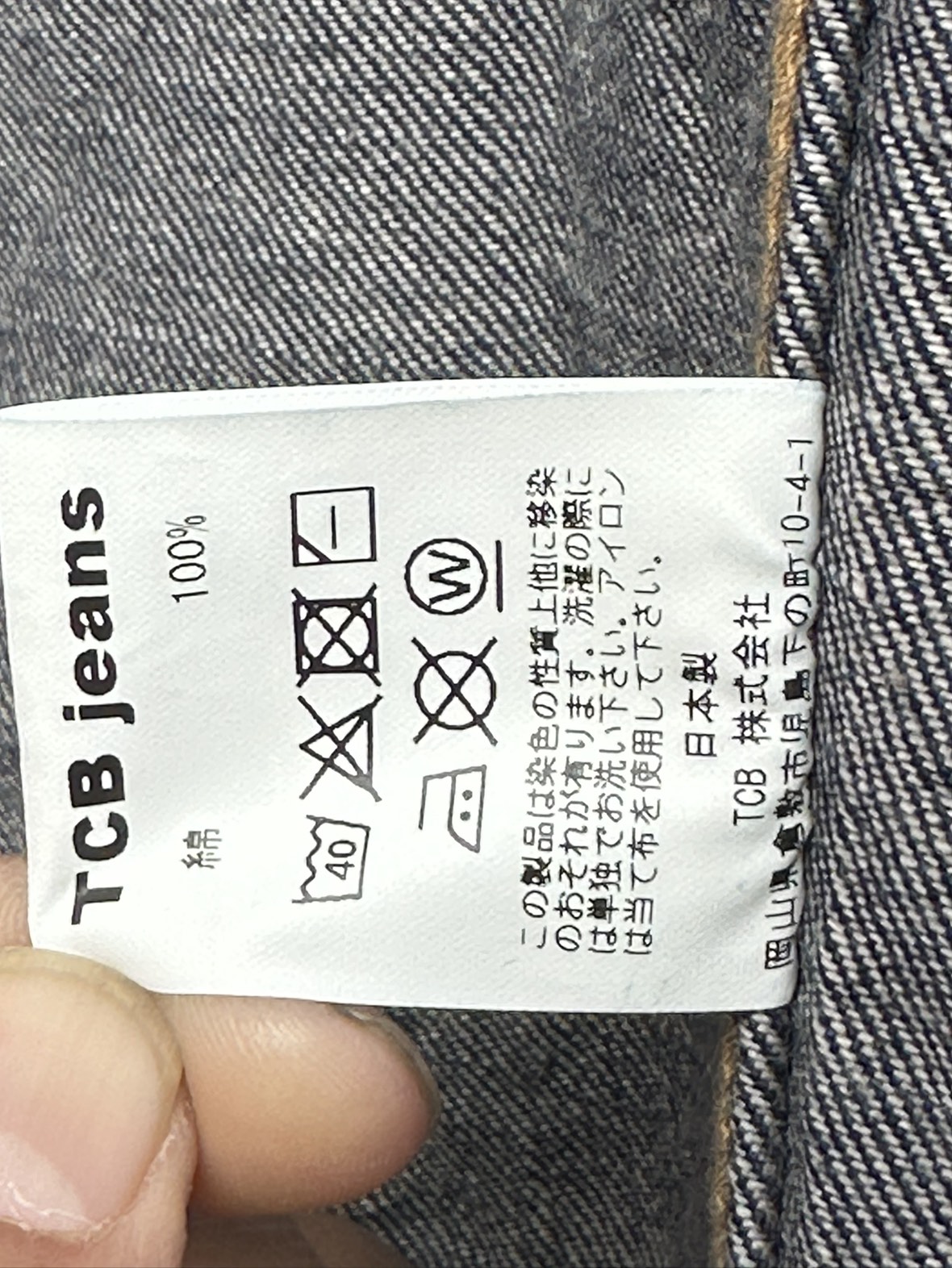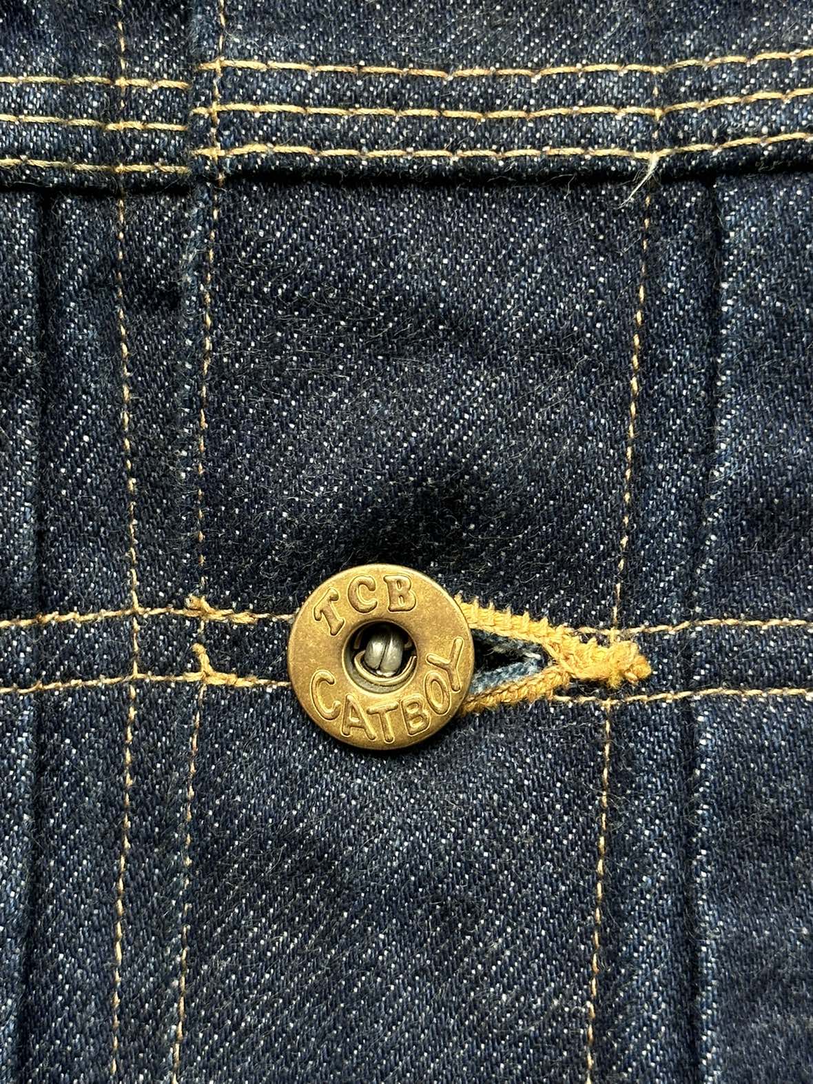 68Rare item! TCB Japanese Denim Jacket for sale. Mens XS size or women’s S The tcb catboy jacket is a modern version of the historical lee cowboy jacket from the 1920’s. "catboy" is actually a wordplay from cowboy as cat is the symbol of the tcb brand. 13oz selvedge denim 100% cotton raw, unsanforized, one-wash (no shrinkage) one chest pocket pleated front cinch back grey weft yarn hair on hide label crafted in japan