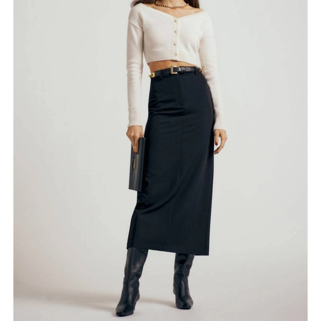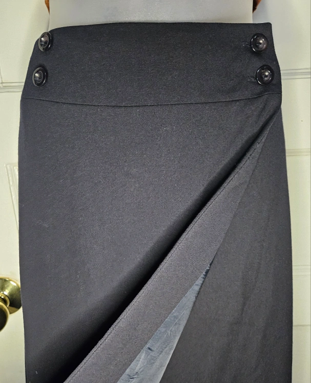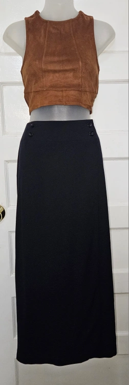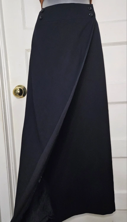Louben Maxi Wrap Skirt. 4 button detail extenuating the waist. Wrap adds to the idea of a slit without having one and makes it for a more modest look.