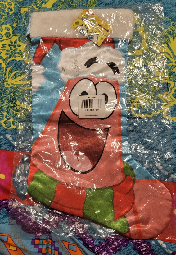 BNWT Patrick Star Christmas stocking. SFPF home. Cross posted. Fastest pickup only at Greenwood and Danforth. Please check my other listings to bundle with more cool stuff.