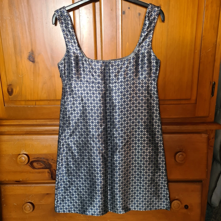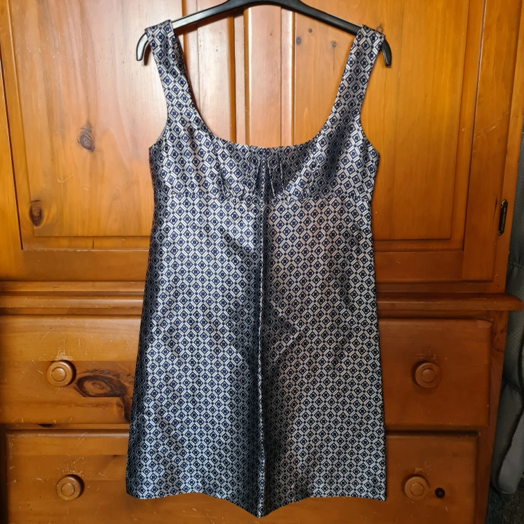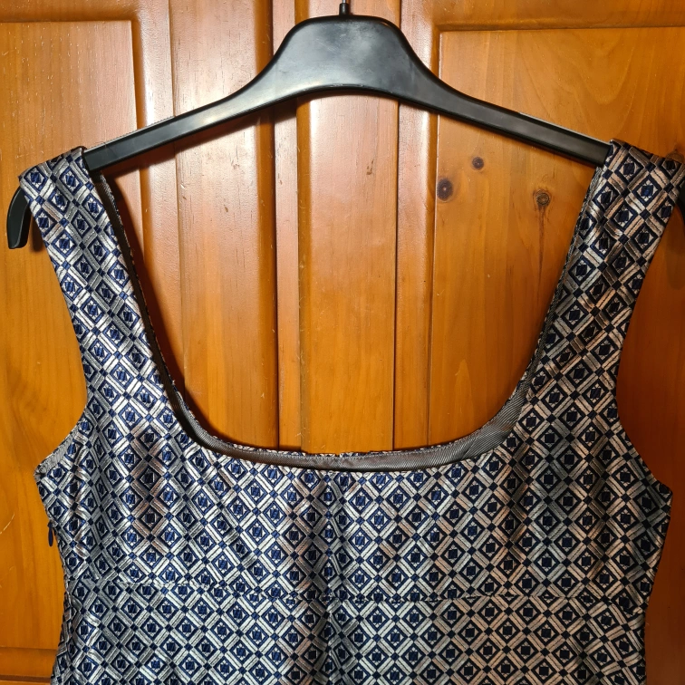 Bkue and silver Diamond print.