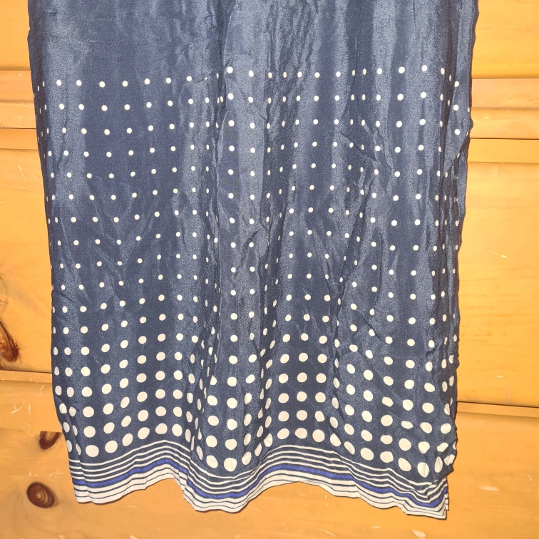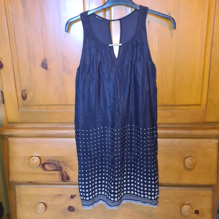 Dark blue sleeveless midi-dress with lines and dots pattern from the brand KOOKAI.