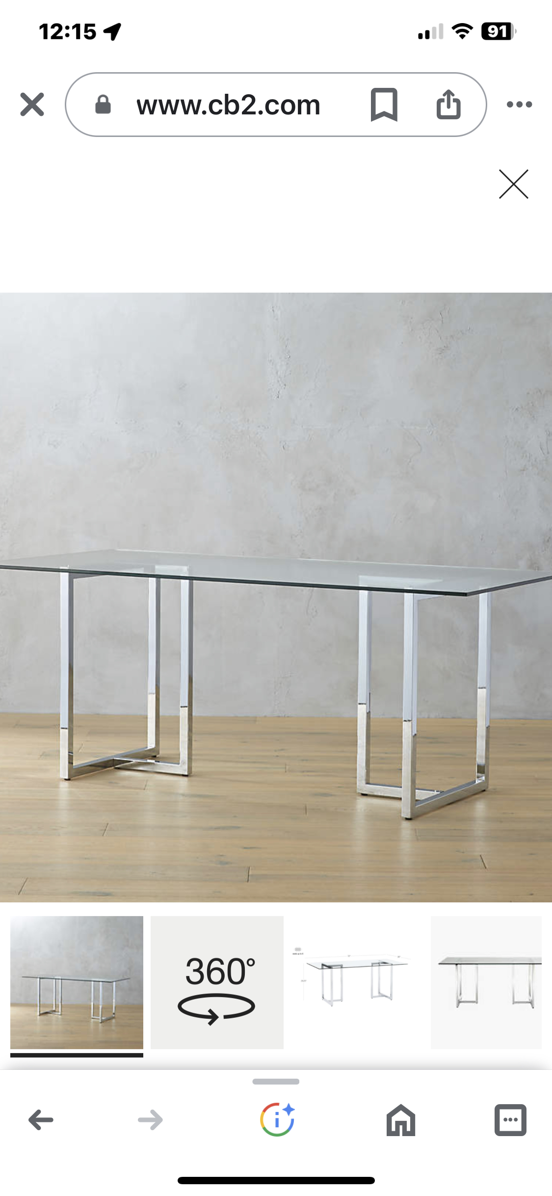 CB2 Glass table 72”