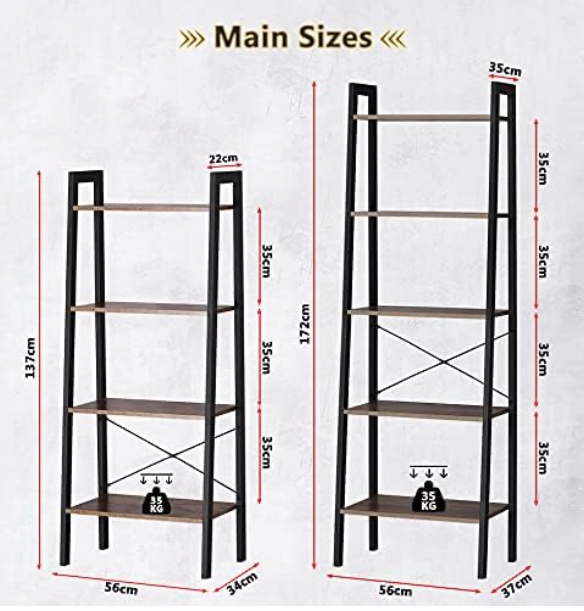 Ladder Shelves, 5-Tier & 4-tier Bookshelf
