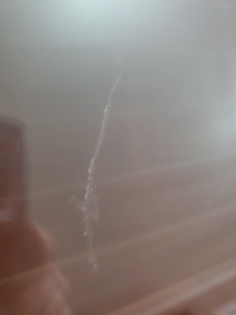 There are some minor scratches in the glass and one corner has a chip on the inside bottom (there are no jagged or sharp edges so it is safe).