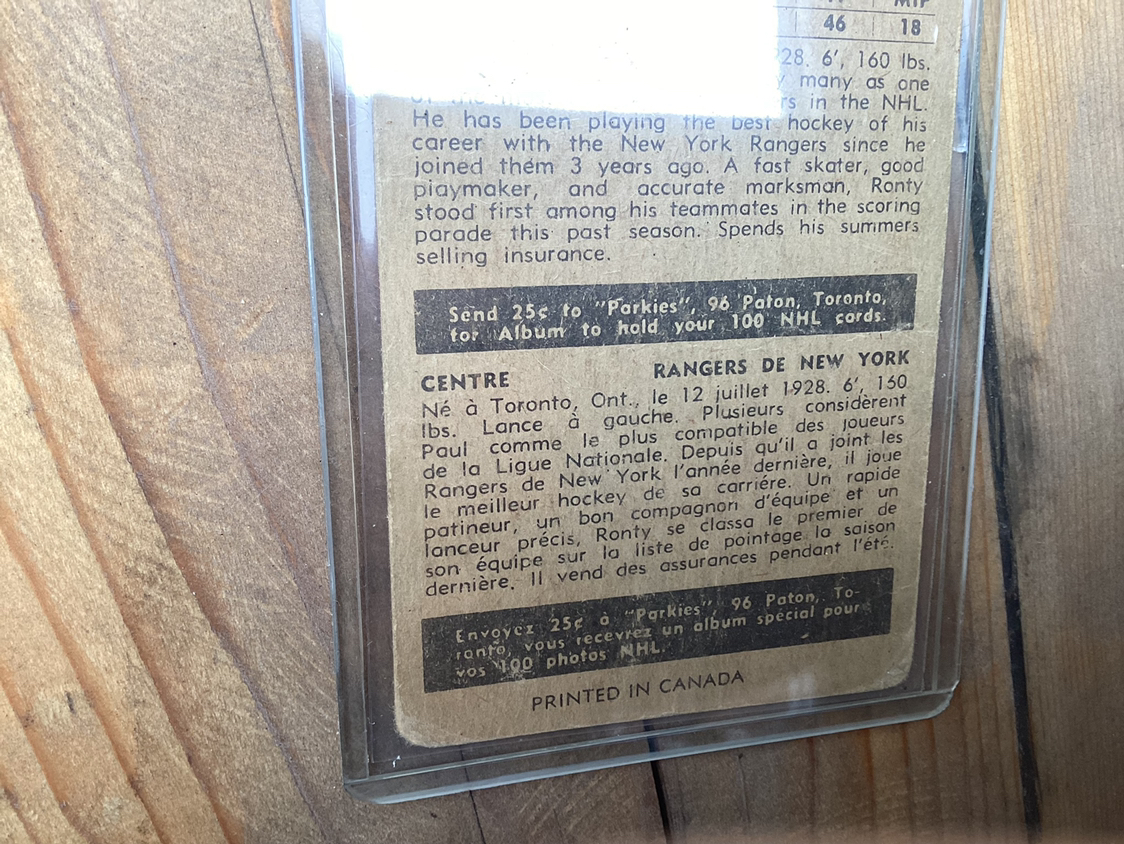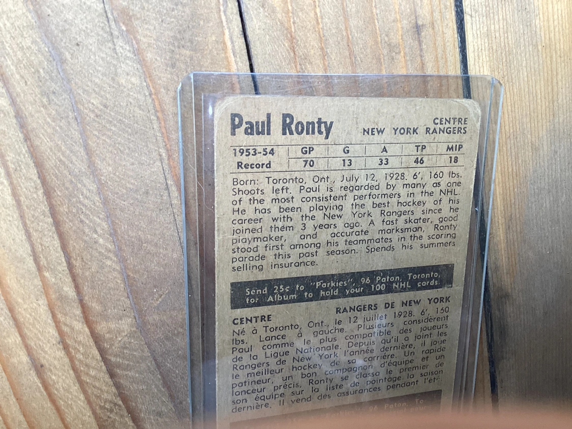 1954-55 PARKHURST NHL PAUL RONTY hockey card 66