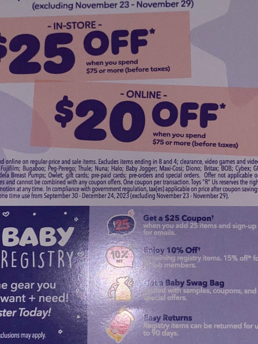 #FREECYCLE $25 coupon BABIES R US / TOYS R us