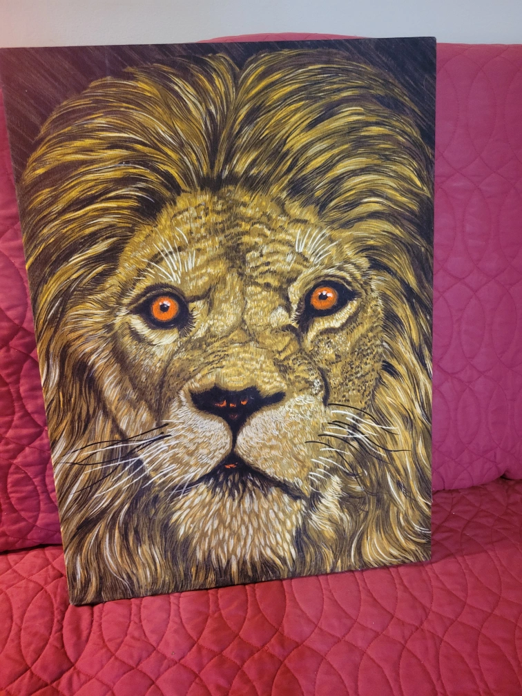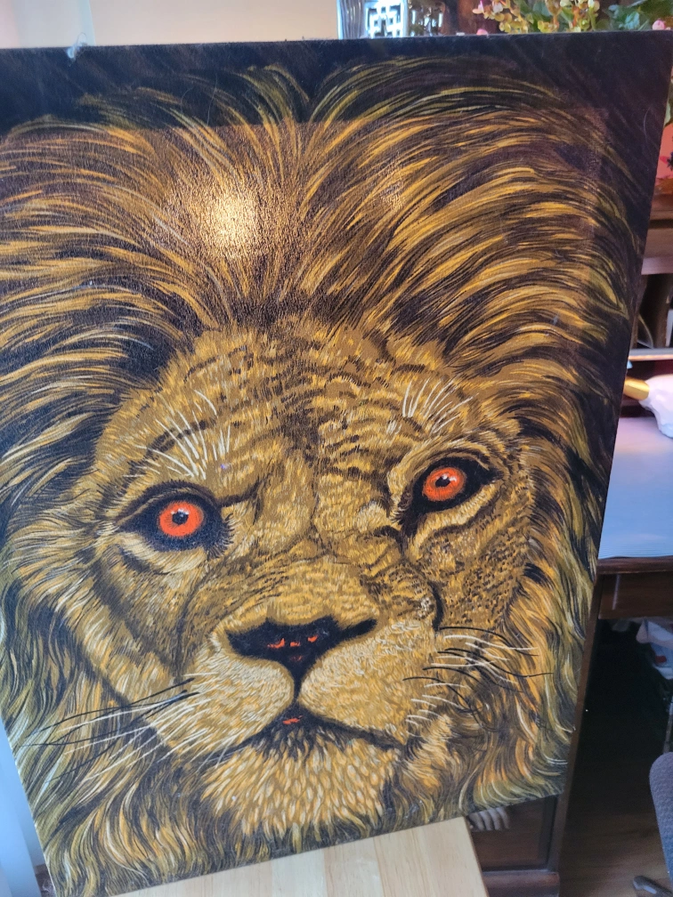 This is a beautiful unframed thins tapestry..vibrant colors. I have no where to hang it. was going to light it up somehow from behind and hang it.