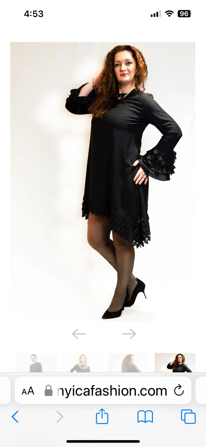 This dress is brand new and has never been wear worn and still has the tags on it. This gorgeous dress is very figure flattering and makes your legs appear longer.