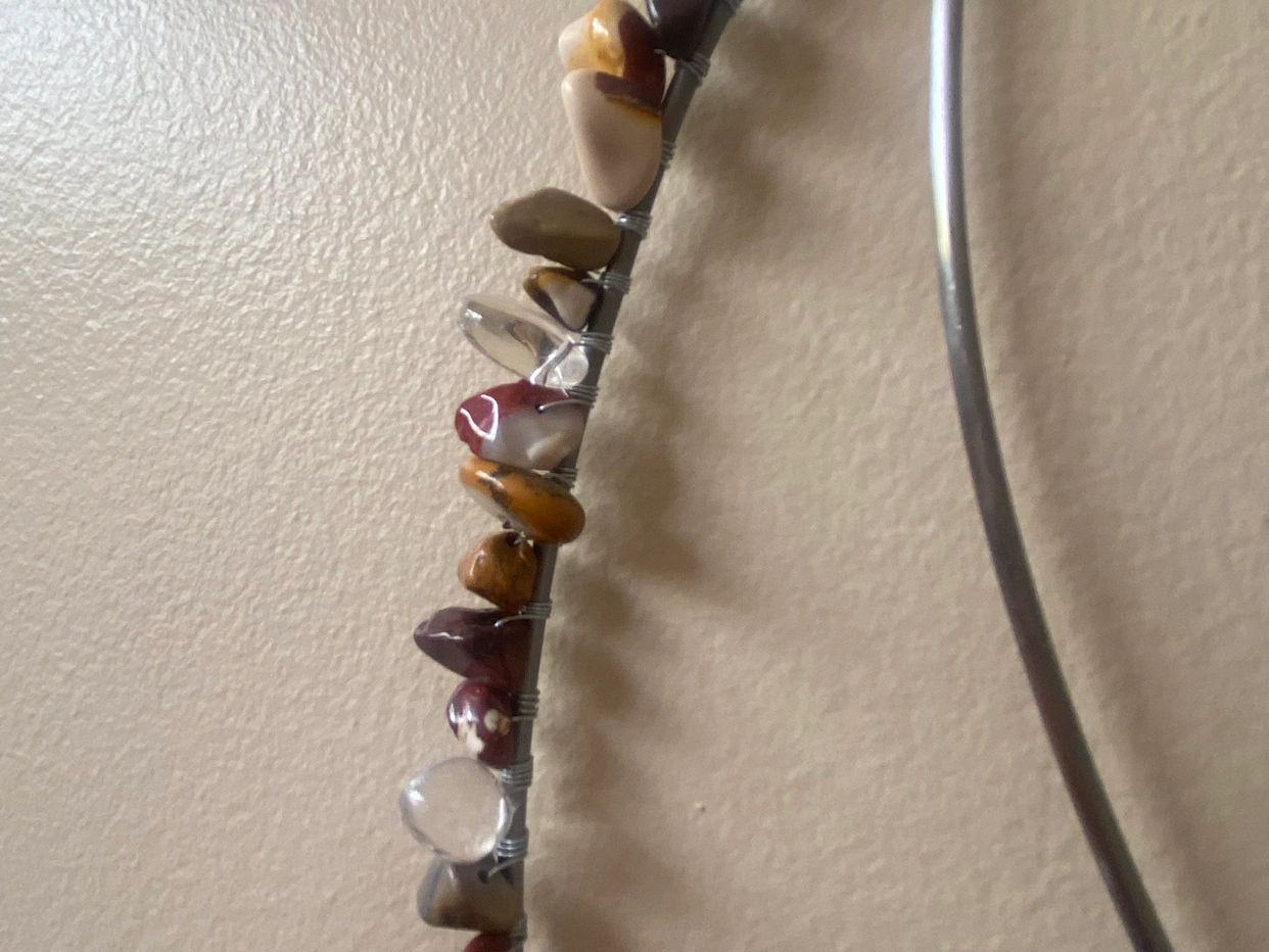 One of a kind you won’t find another one like it!! It was hand made with clear quartz and mookaite stones