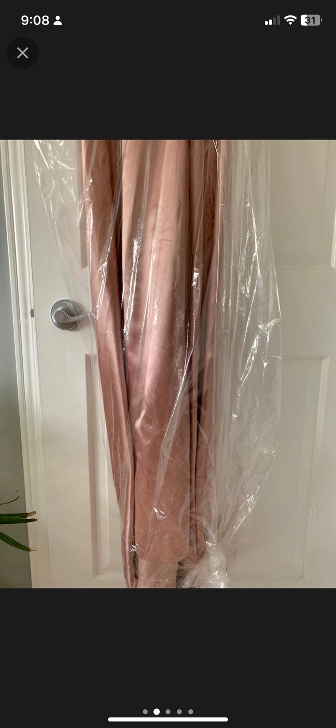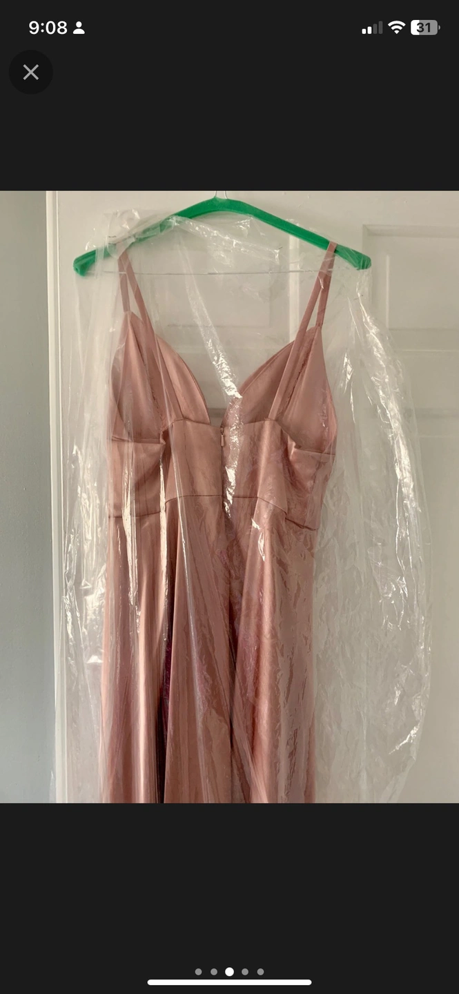 Beautiful rose gold dress that would be perfect for prom or any other formal occasion. It has a slit on both sides, and a beautiful train that can be altered if desired. In perfect condition, no rips or tears and it was previously dry cleaned. I bought it a few years ago off of someone else, but never wore it. It should fit size XS or a size 0. Similar style to the picture that is attached.