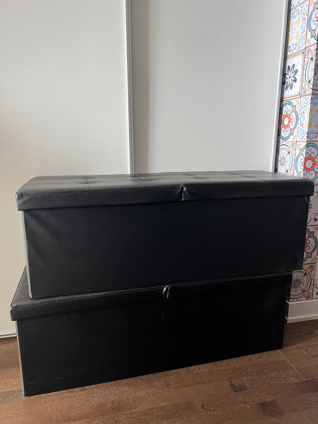 I paid about $123 per ottoman when initially purchased on Amazon. Selling $40 for the two together, because I’m moving. Kept in a pet friendly home for storage next to my bed and unfortunately, one of the two is scratched by my dog. It’s not broken, still usable, but you probably wanna cover it with a blanket or throw pillows.