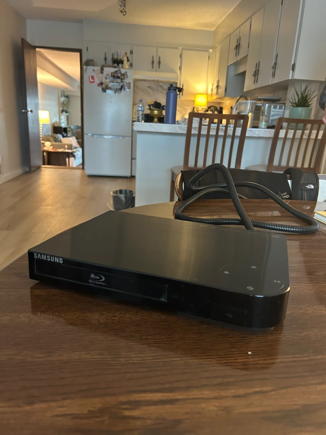 Selling a Samsung Blu-Ray player in good condition. It's a black model, compatible with DVD and Blu-Ray discs. Comes with power cable.