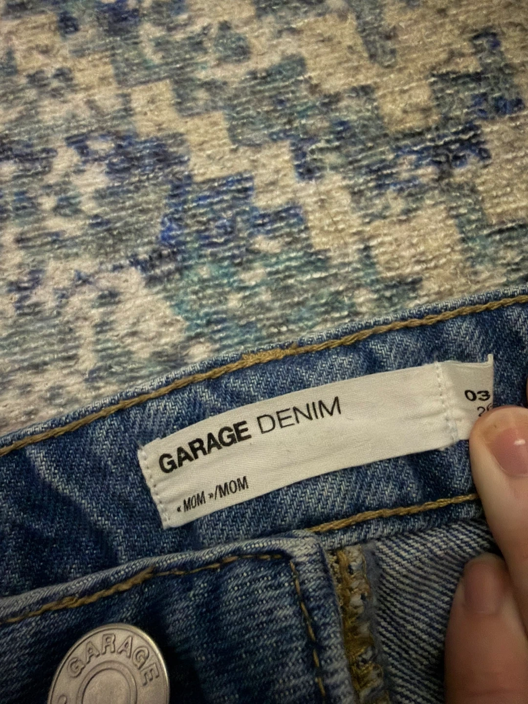 These are Garage Denim mom jeans in a medium wash. They feature distressed detailing and a relaxed fit. Perfect for everyday wear!