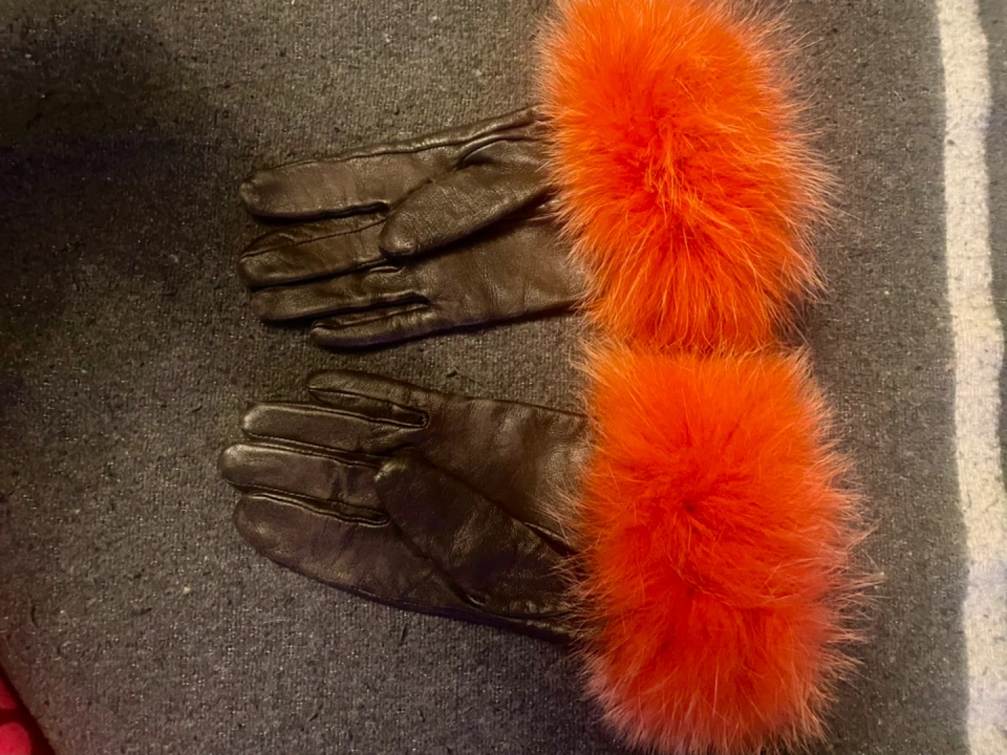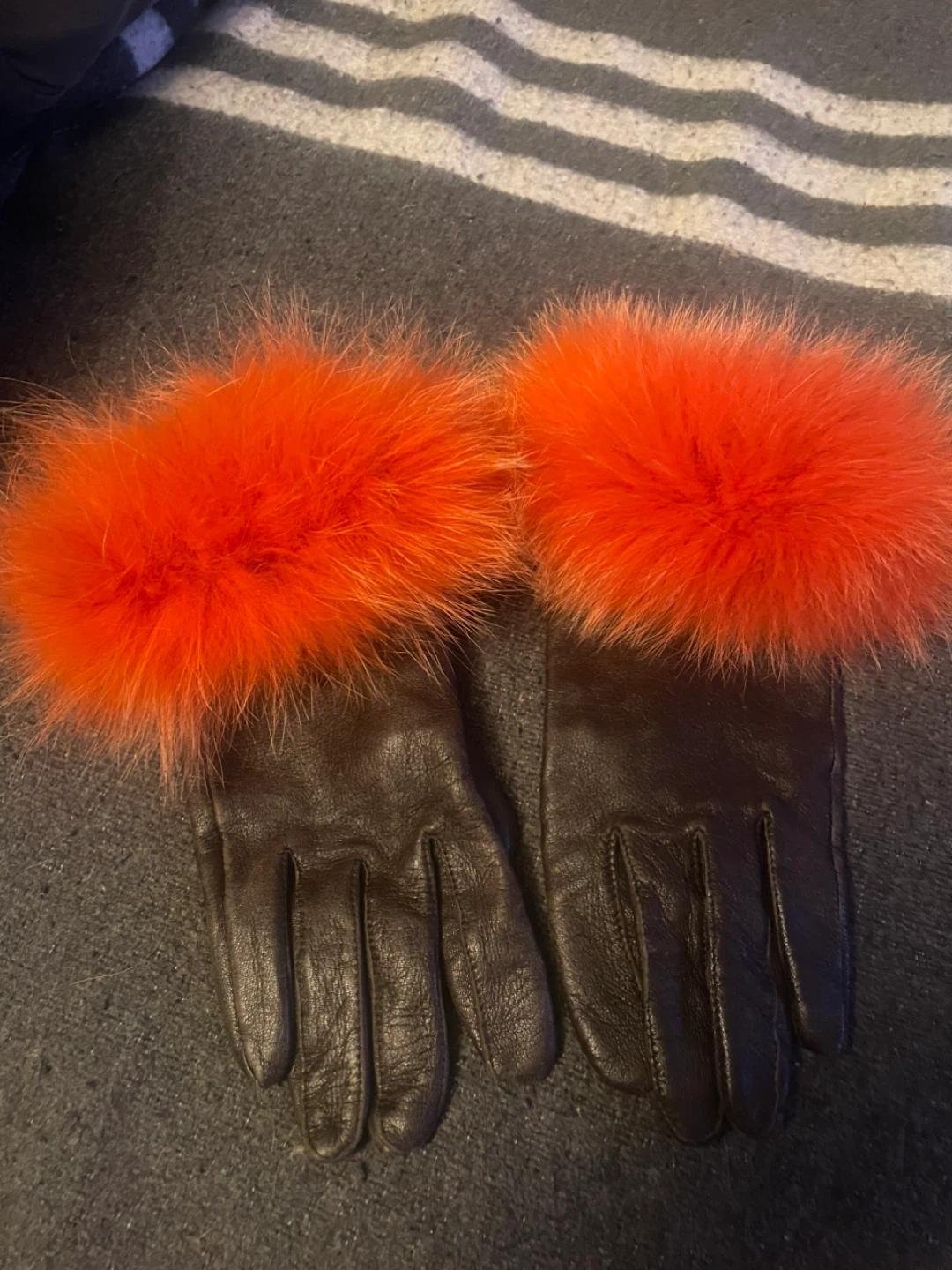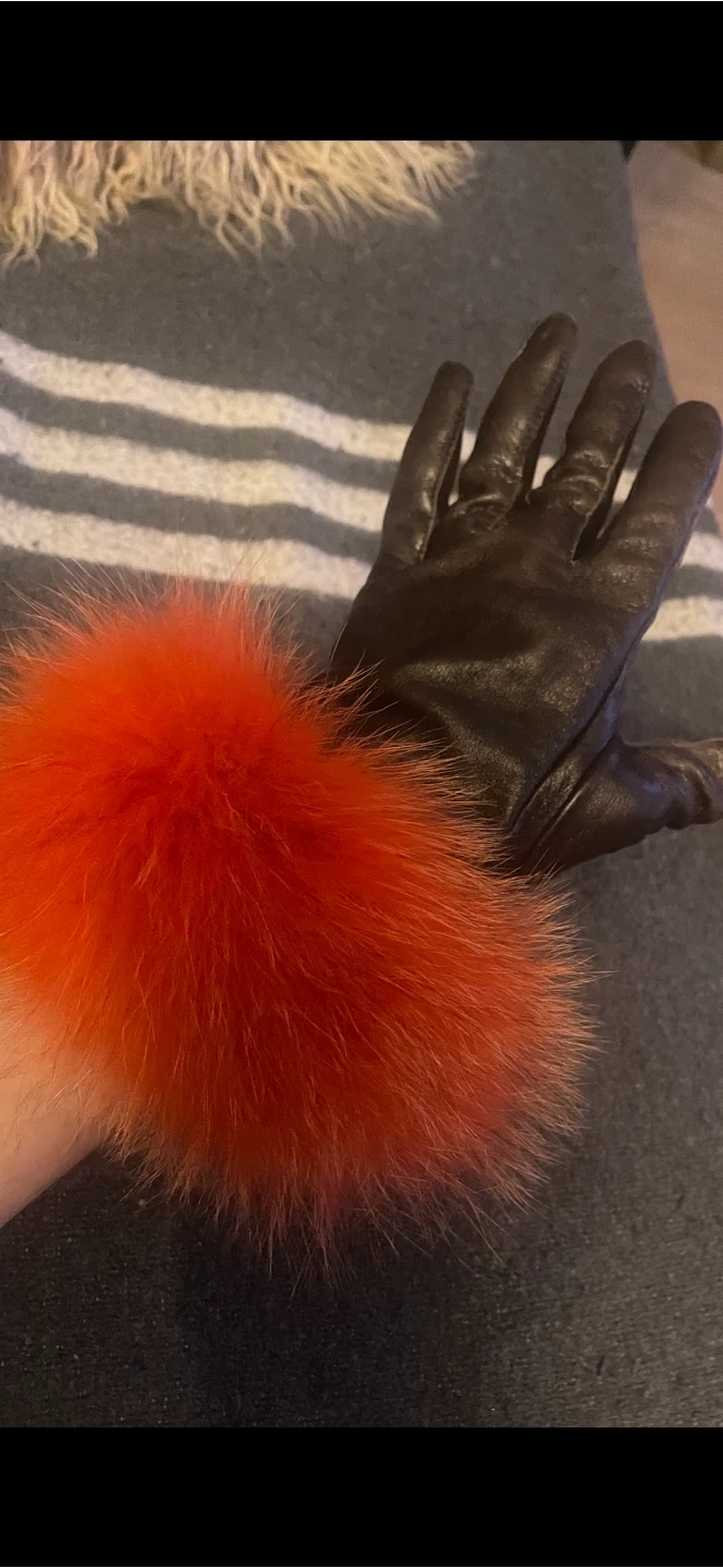 Brown Leather Gloves with Orange Fur Trim