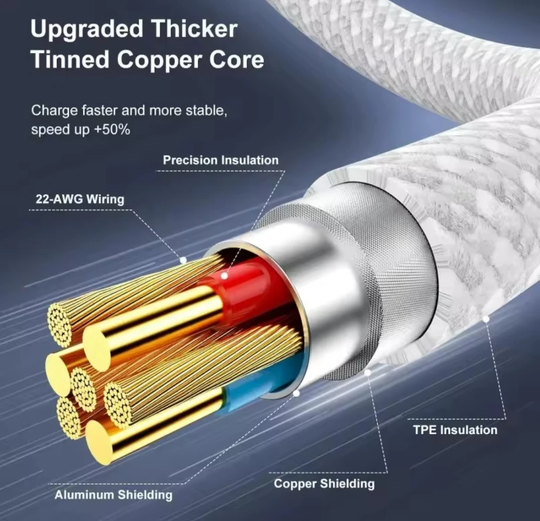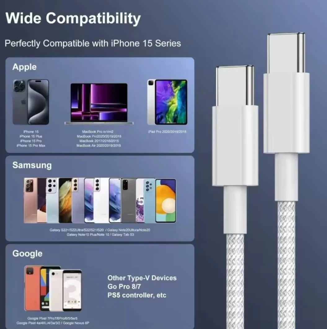 Brand new without package! 1M Super quality braided tangle free cable. Fast charging 60W PD. Perfect for Apple, Samsung, Google or any smart phone devices that are fast charging.