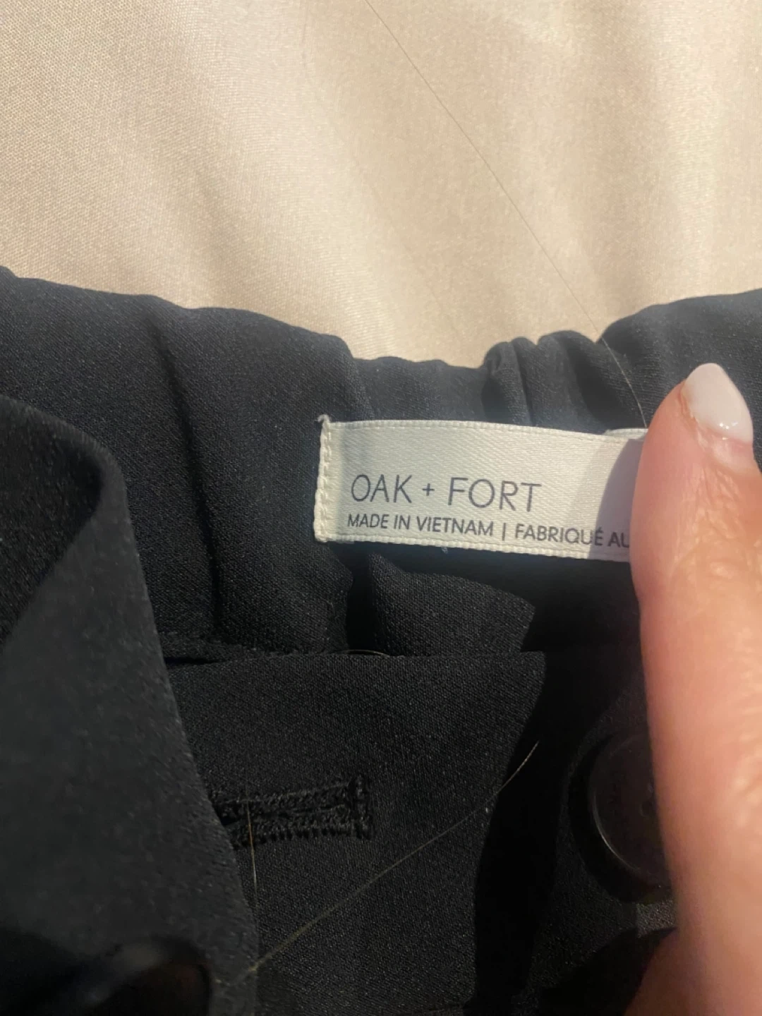 Selling a pair of Oak + Fort black pants in size XS. They're in great condition and ready for a new owner! Perfect for a casual or dressed-up look