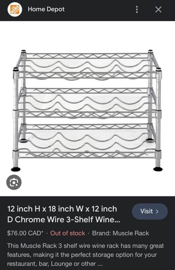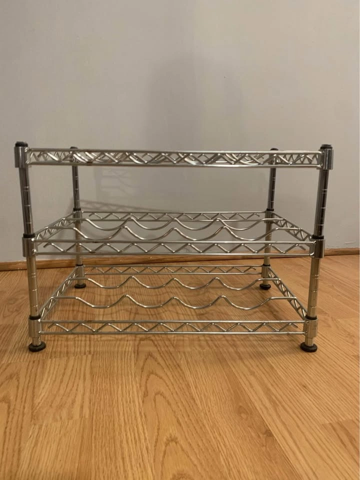Muscle Rack 12-Bottle Chrome Wire Wine Rack Great for countertop or under counter storage of bottles. Assembled Dimensions (L x W x H) 12.00 x 18.00 x 12.00 Inches