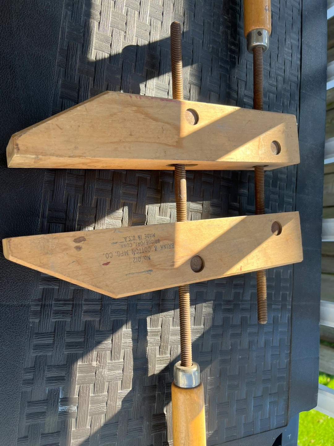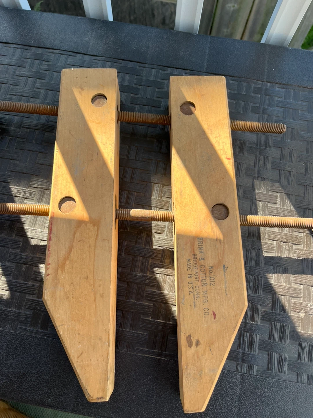 Brink & Cotton No. 012 wood clamp. In great condition and endlessly versatile for woodworking. Pickup at Rogers and Caledonia.