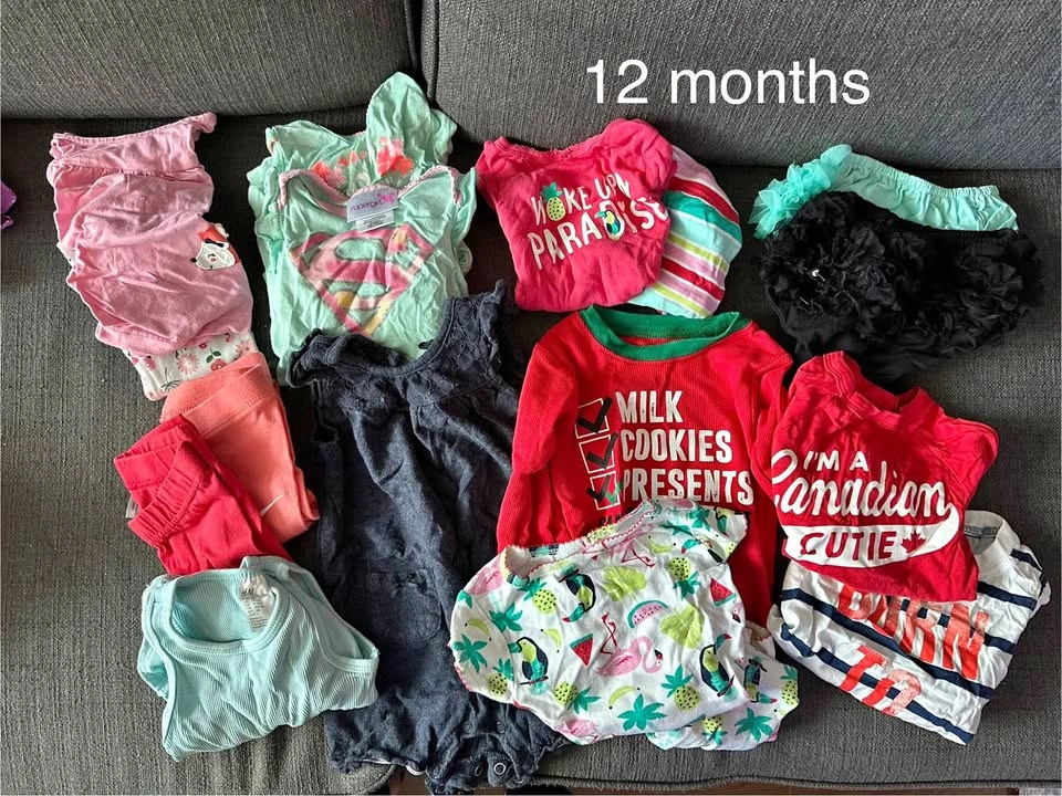 1417 pieces of baby clothes, 12 months. $30 for the lot. Pick up front and blue jays way/Spadina
