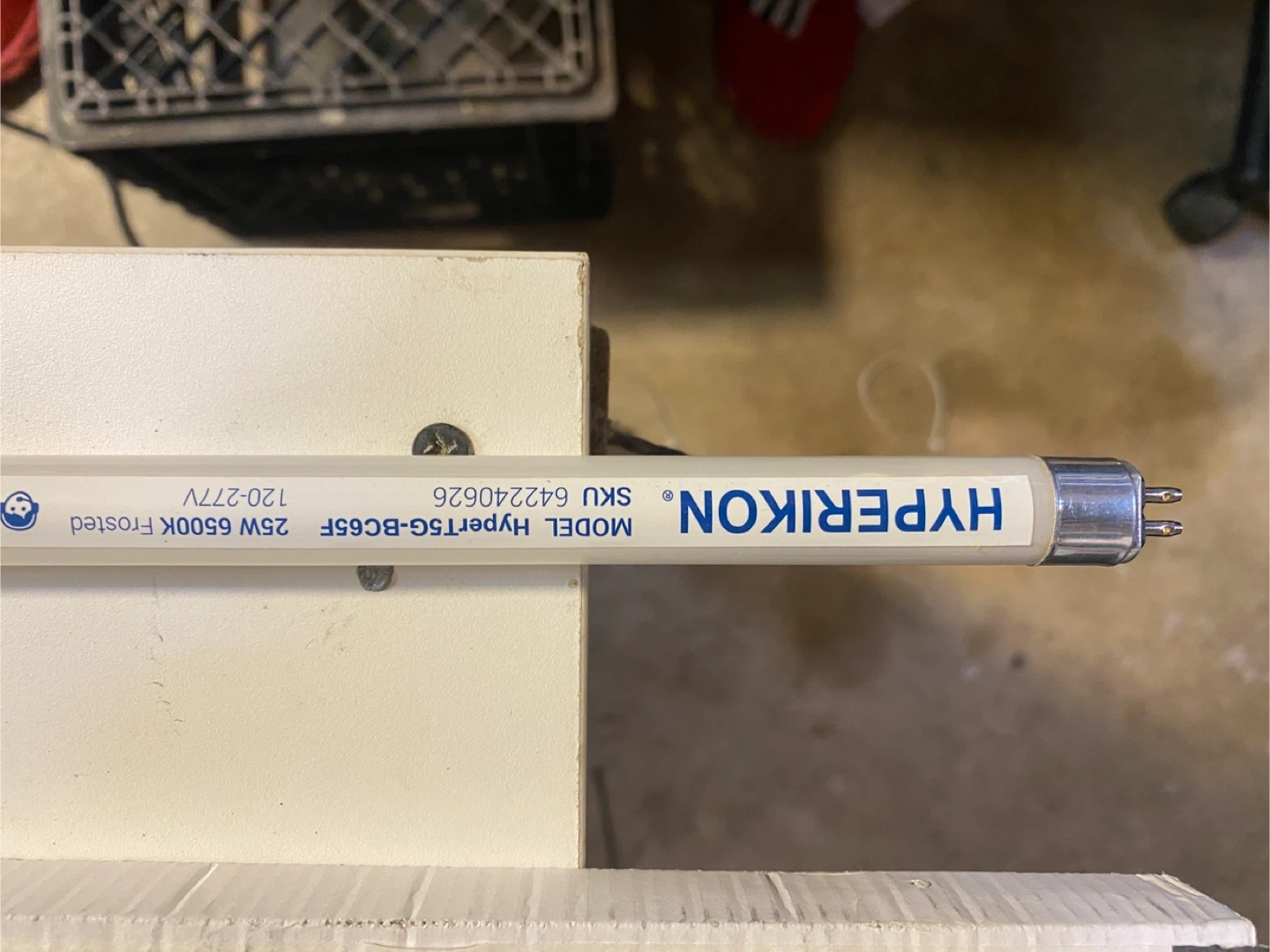 Selling 12 packs HYPERIKON HyperT5G-BC65F LED tube. I25W, 6500K frosted tube, suitable for damp locations. Direct replacement for 54W/1150mm/T5/G5/HF lamps specified on the label.