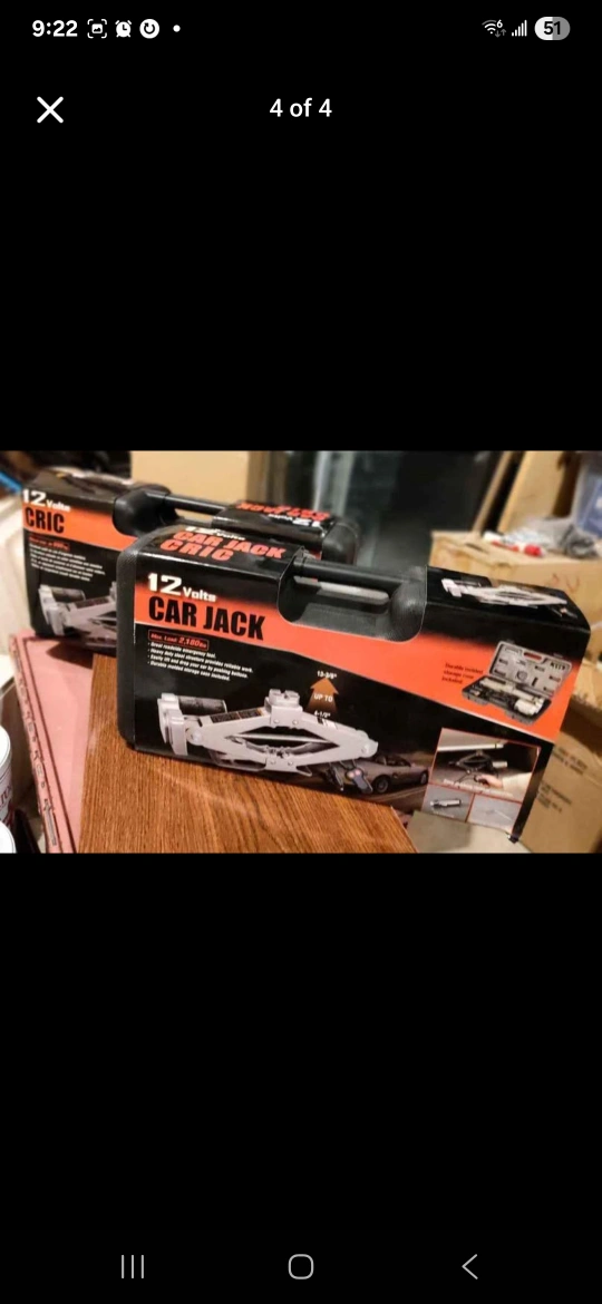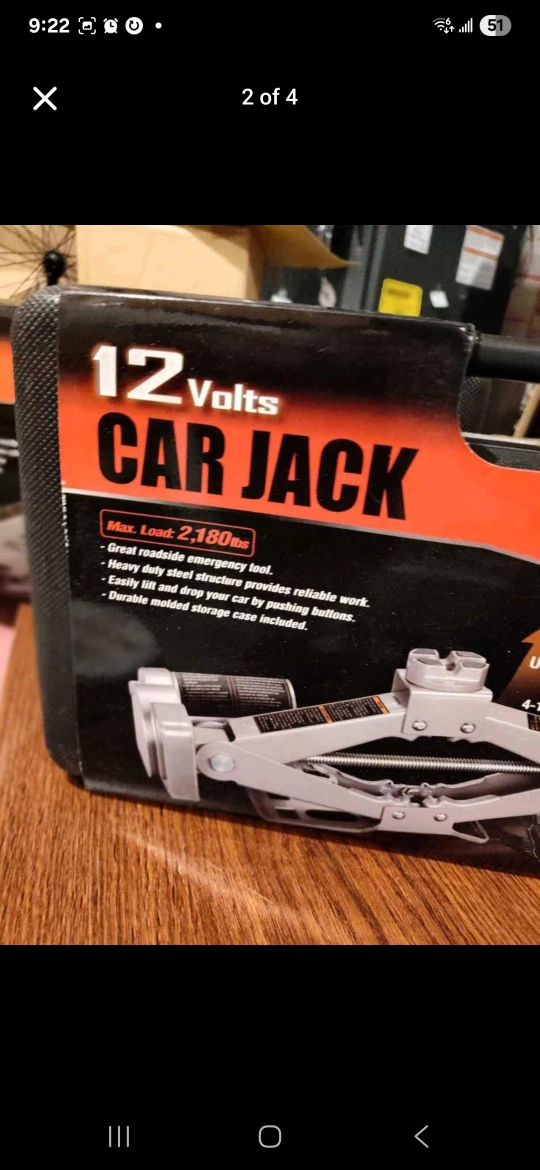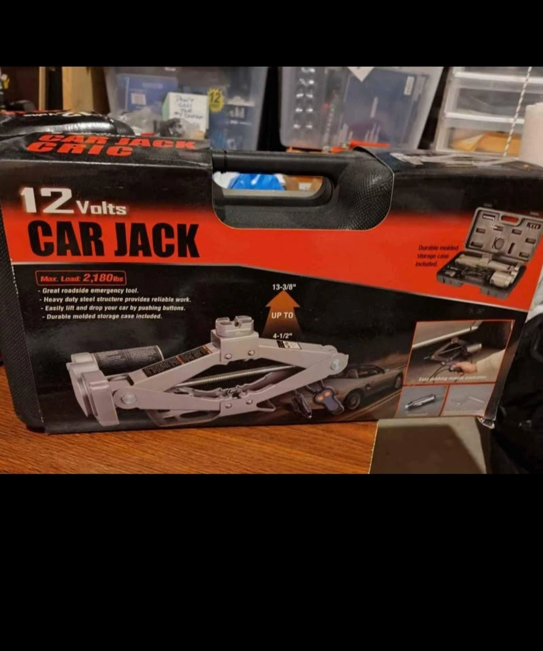 Selling a 12 Volts Car Jack. It is a great roadside emergency tool. The heavy duty steel structure provides reliable work. You can easily lift and drop your car by pushing buttons. A durable molded storage case is included too