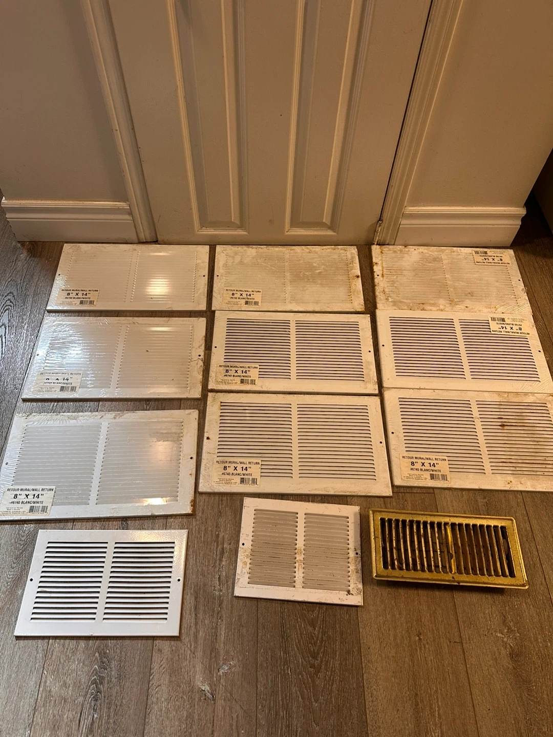 Selling some wall return vents that are 8" x 14". They are white in colour and made in Canada. Great for any home renovation project! $ 15 all 12 air vents