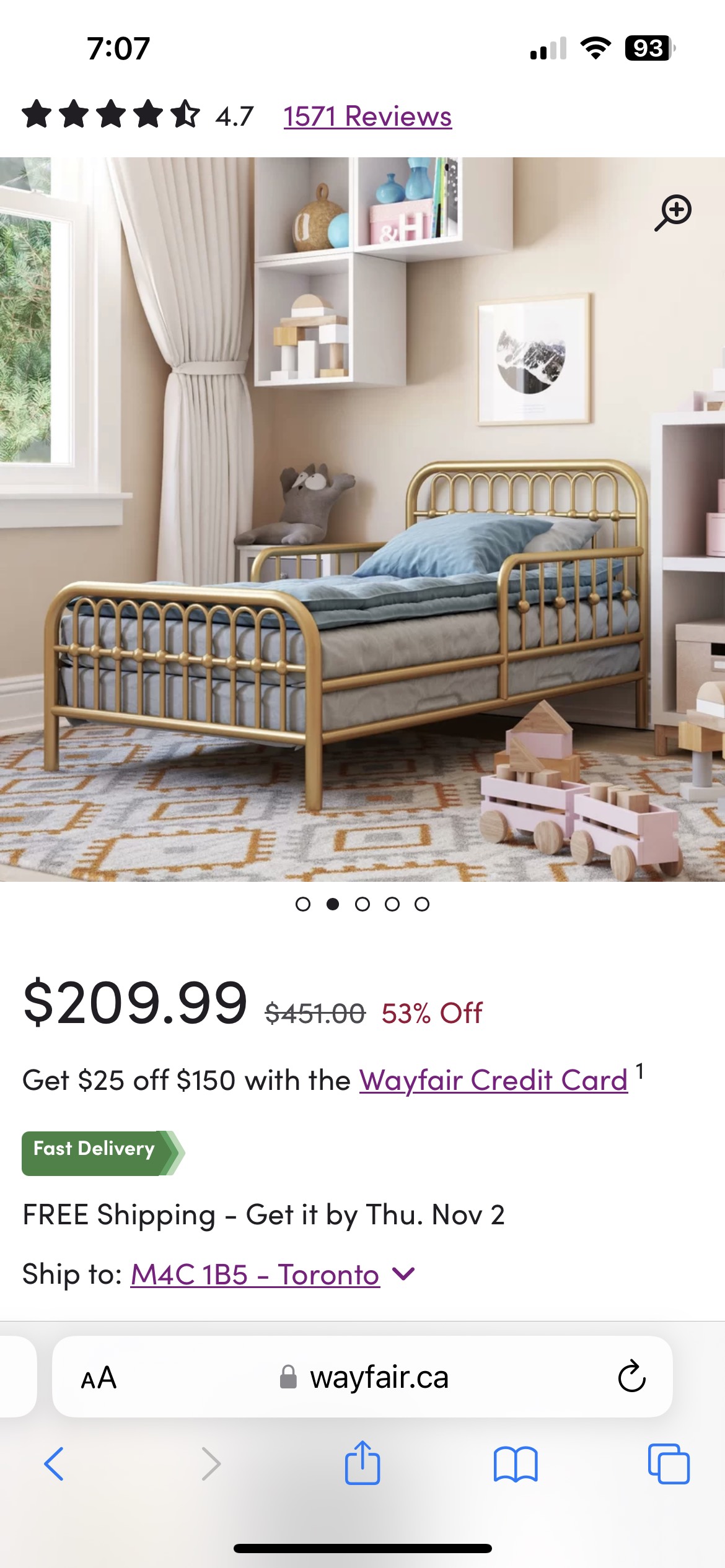 Buy & SellToddler bed with mattressToddler bed with mattress$100Bearly used toddler bed. Dimensions are mentioned in the picture. Mattress also included.Pickup only.WHERE TO MEETCheck LocationView MapSELLERMusaratChurchill Meadows523 reviews0 chats·0 favorites·17 viewsSEND CHAT TO SELLERHi Musarat! I’m interested in your listing.Hi Musarat! I’m interested in your listing.Get the Karrot app to chatSign In to chat