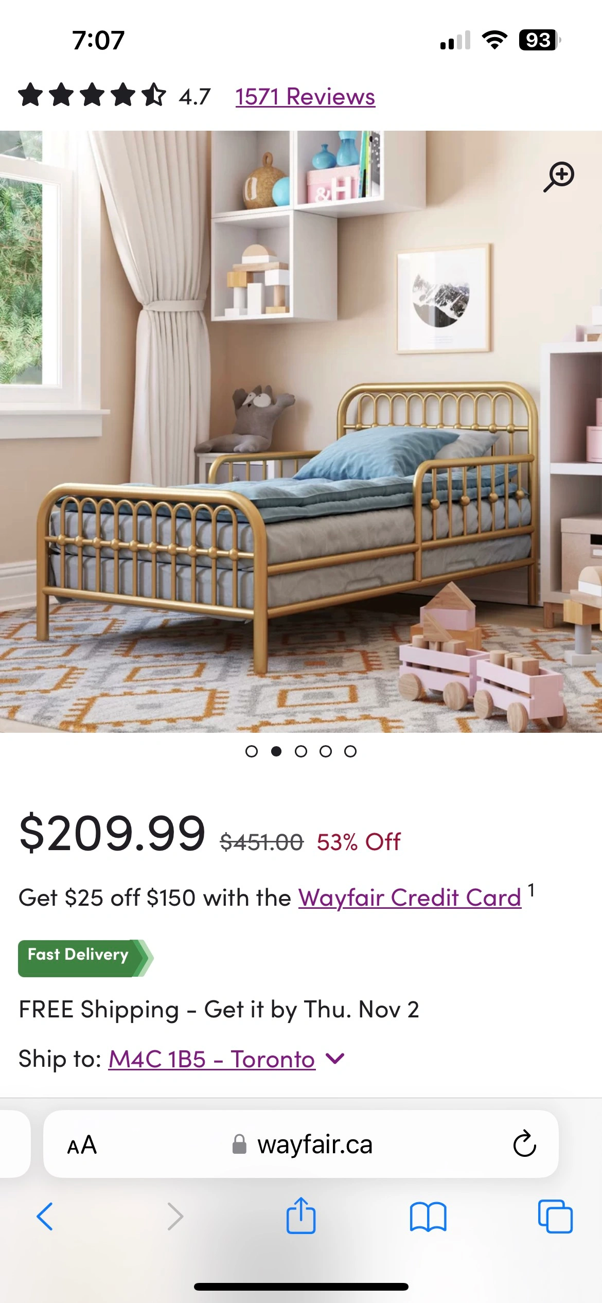 Buy & SellToddler bed with mattressToddler bed with mattress$100Bearly used toddler bed. Dimensions are mentioned in the picture. Mattress also included.Pickup only.WHERE TO MEETCheck LocationView MapSELLERMusaratChurchill Meadows423 reviews0 chats·0 favorites·17 viewsSEND CHAT TO SELLERHi Musarat! I’m interested in your listing.Hi Musarat! I’m interested in your listing.Get the Karrot app to chatSign In to chat