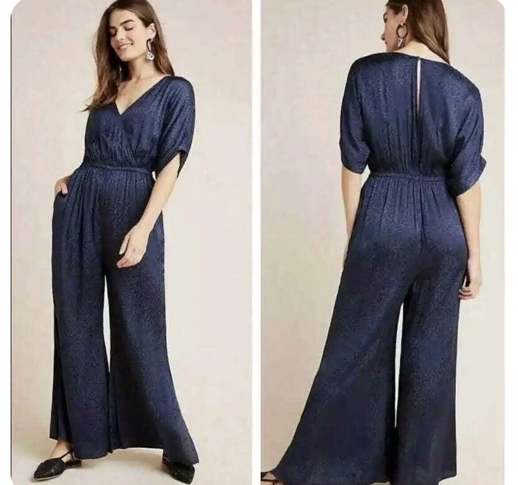 New Maeve for Anthropologie blue jumpsuit. Perfect outfit for the party or different other occasions. Retail price $170. Side pockets, elastic waist, hook and eye closure at the V neck, side leg slit. Silky material, easy to put on and off. Length: 57”, length from waist down: 47”, waist: 31”, front rise: 15” 100% viscose