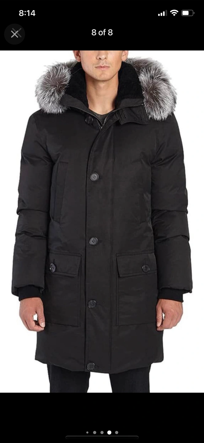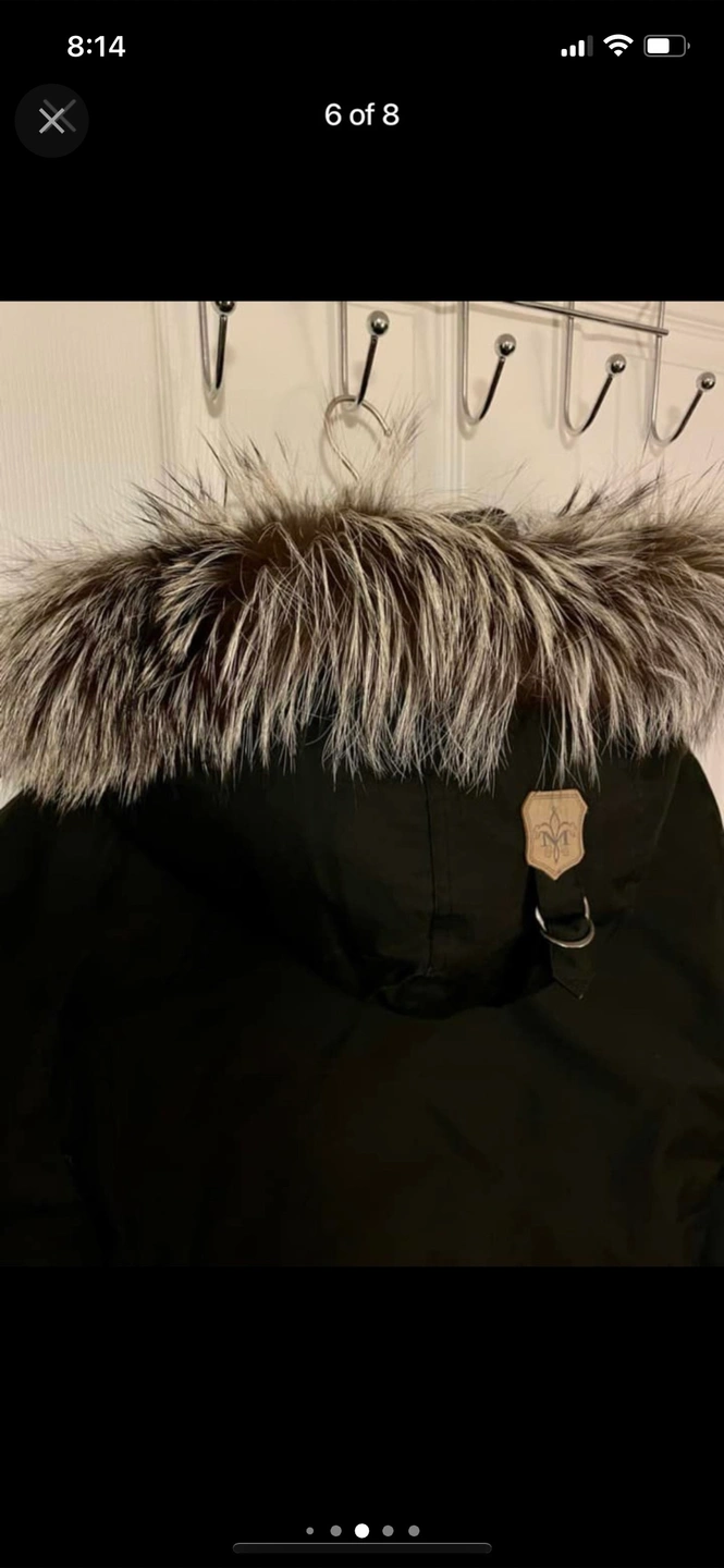 Removable natural silver fox fur trim center front zip closure with button place fleece lined pockets for added hand warmth wind pro of and breathable water resistant and water repellant