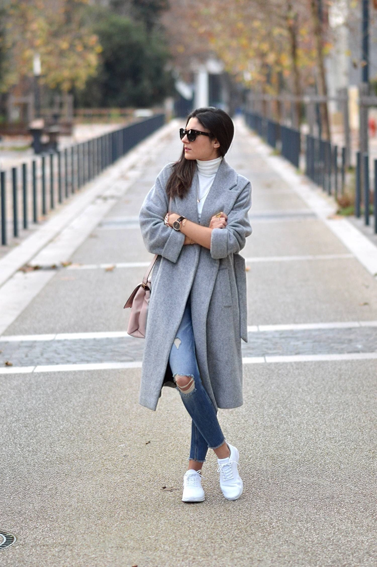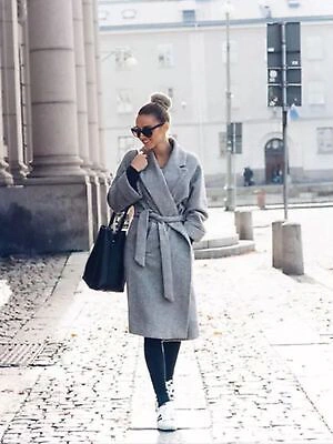 Zara Belted Wool Blend Gray Small