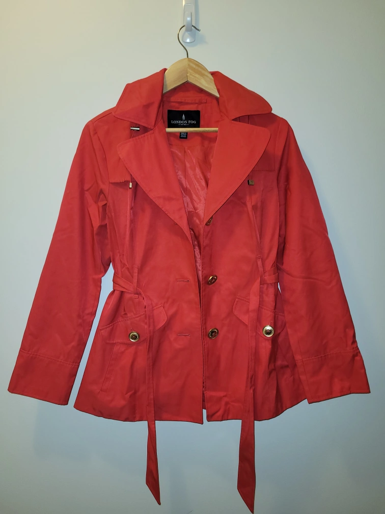 When you think of rain, do you think of a classic red raincoat straight out of a picture book? Of course you do! And this baby takes it up a notch with gold buttons! Wow! Size small, London Fog, worn just twice, perfect condition 👌